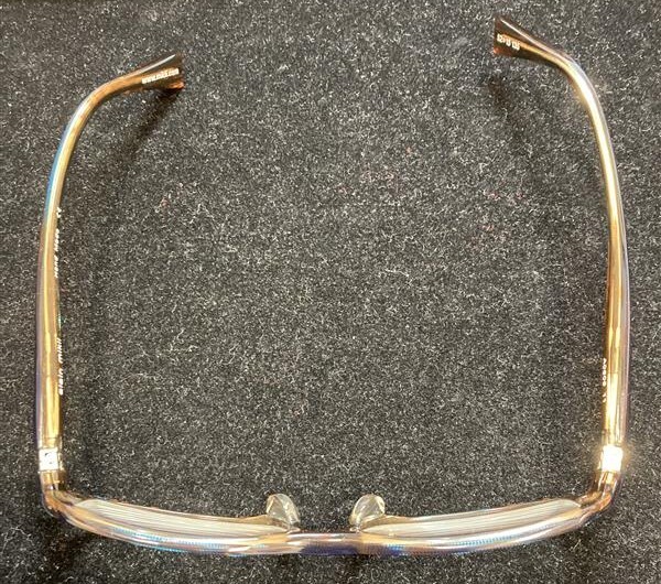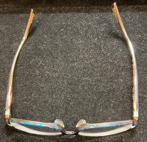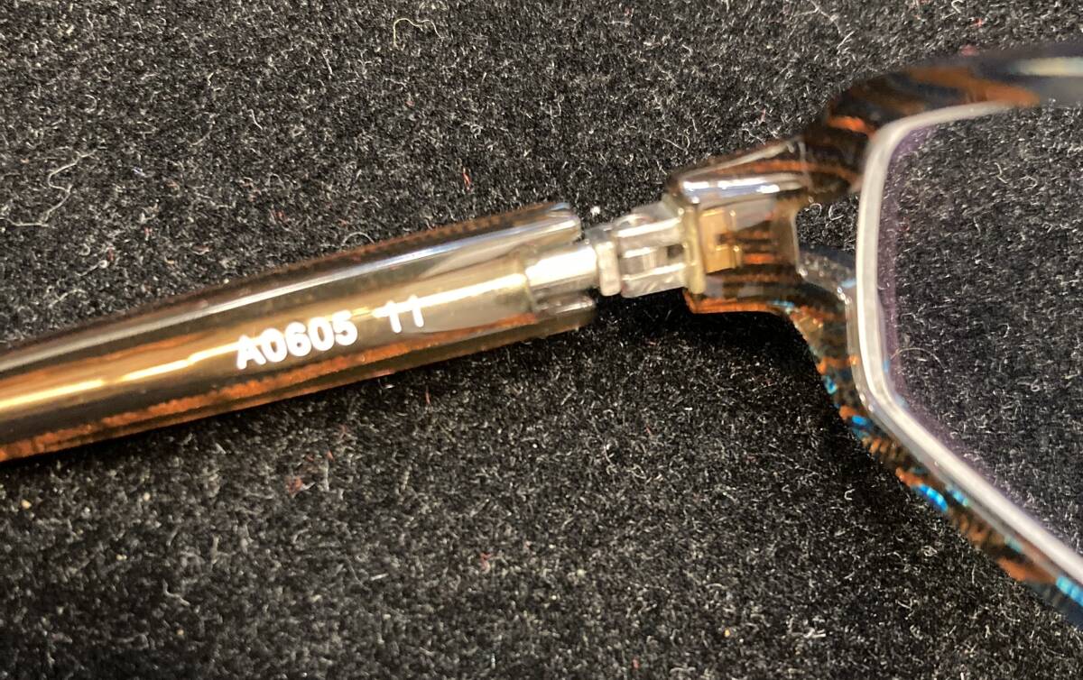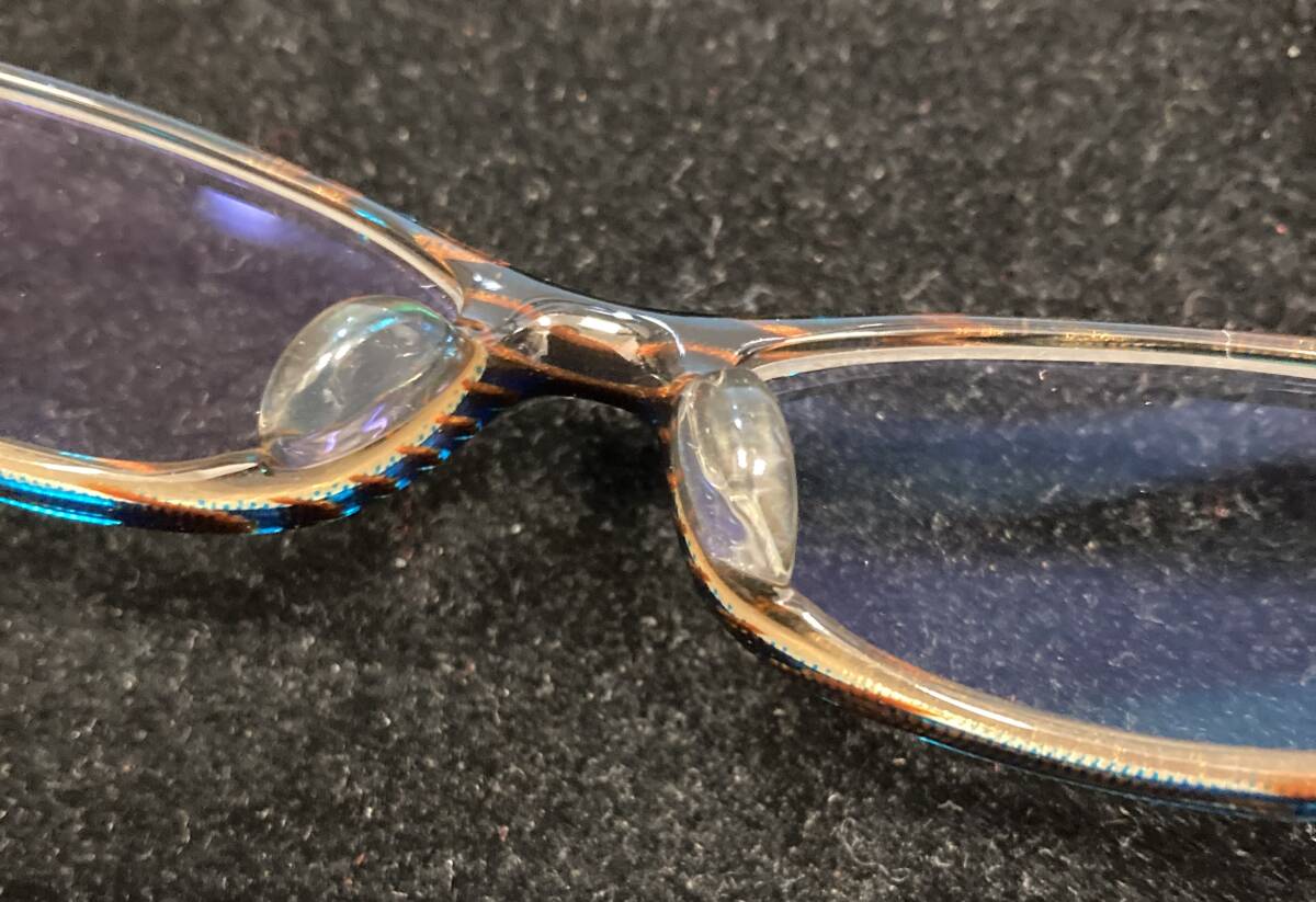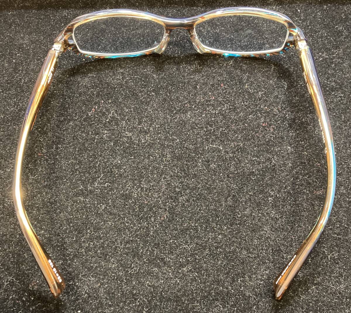 眼鏡を開いて水平に置いてみると、やや曲がりが見受けられます。