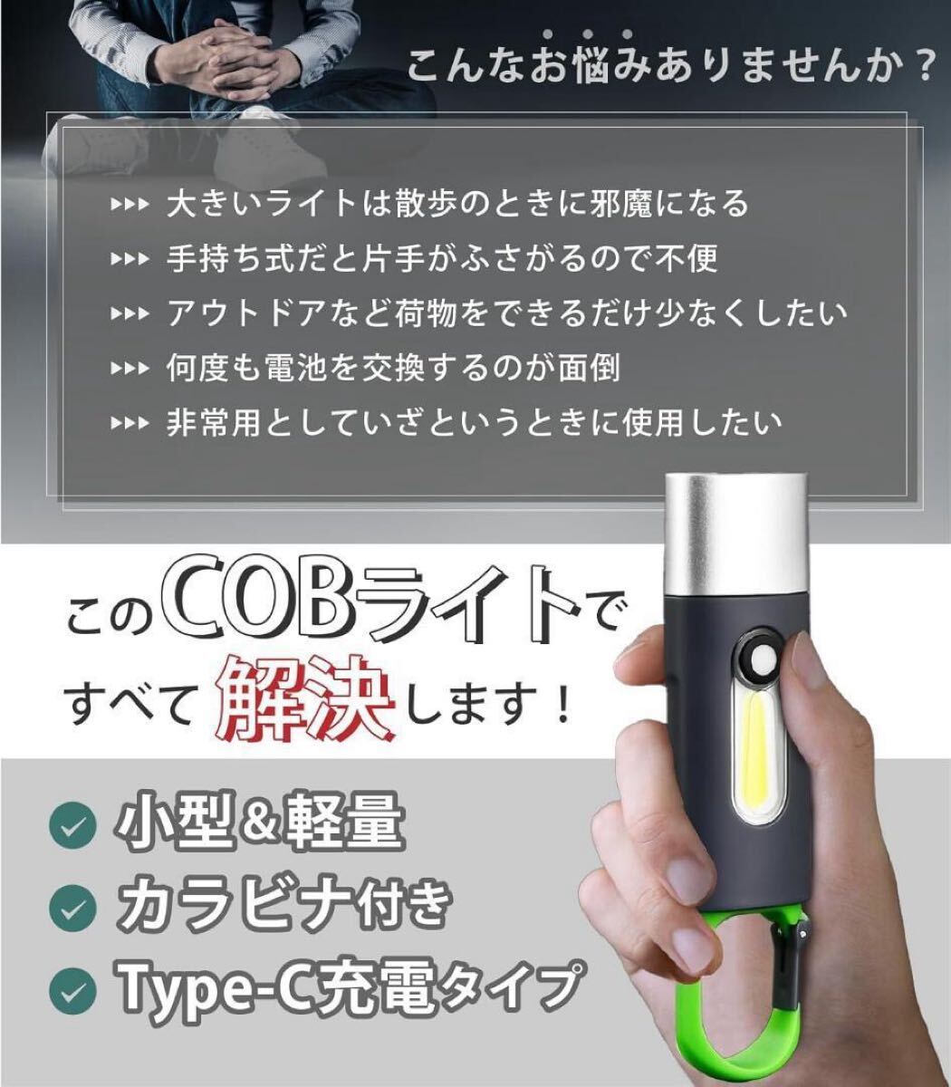 cobライト 充電式 ledライト ワークライト カラビナ 小型 防災 散歩