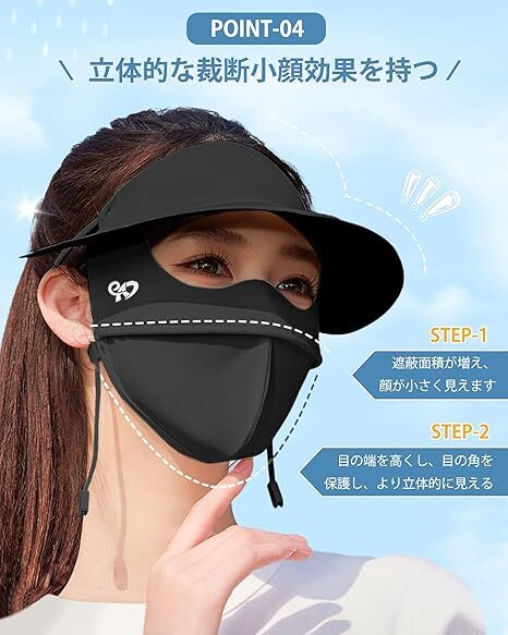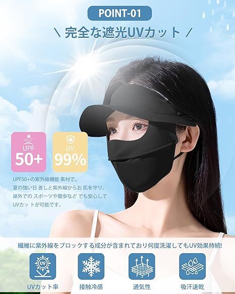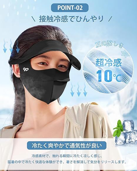 2025夏新登場 フェイスカバー【-6℃冷感技術・UV カット率 99%・UPF50+認定】 日焼けマスク 吸汗速乾 顔 日焼け防止 ブラック