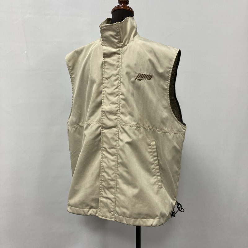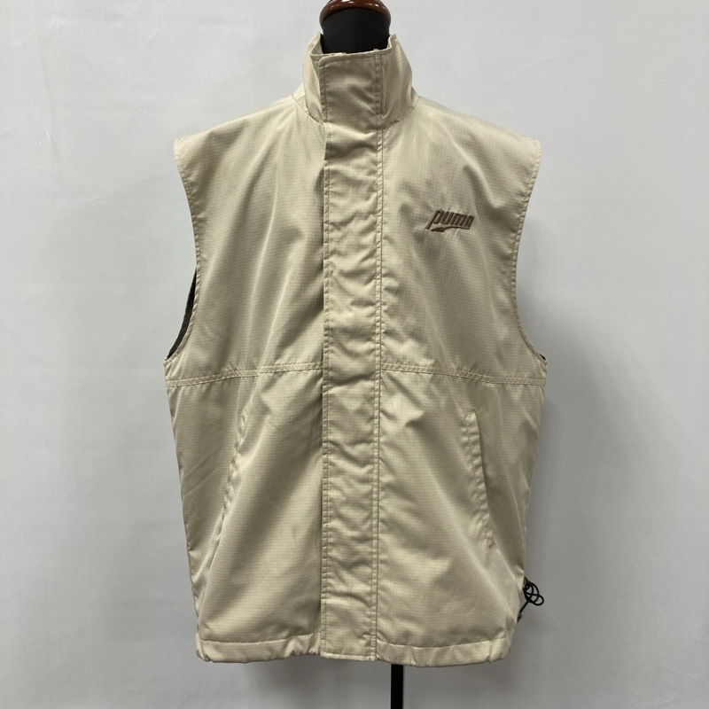 PUMA/プーマ/胸ロゴ刺繍/リップストップナイロン/ジップアップベスト/スタンドネック/ハイネック/裾ドローコード付き/L