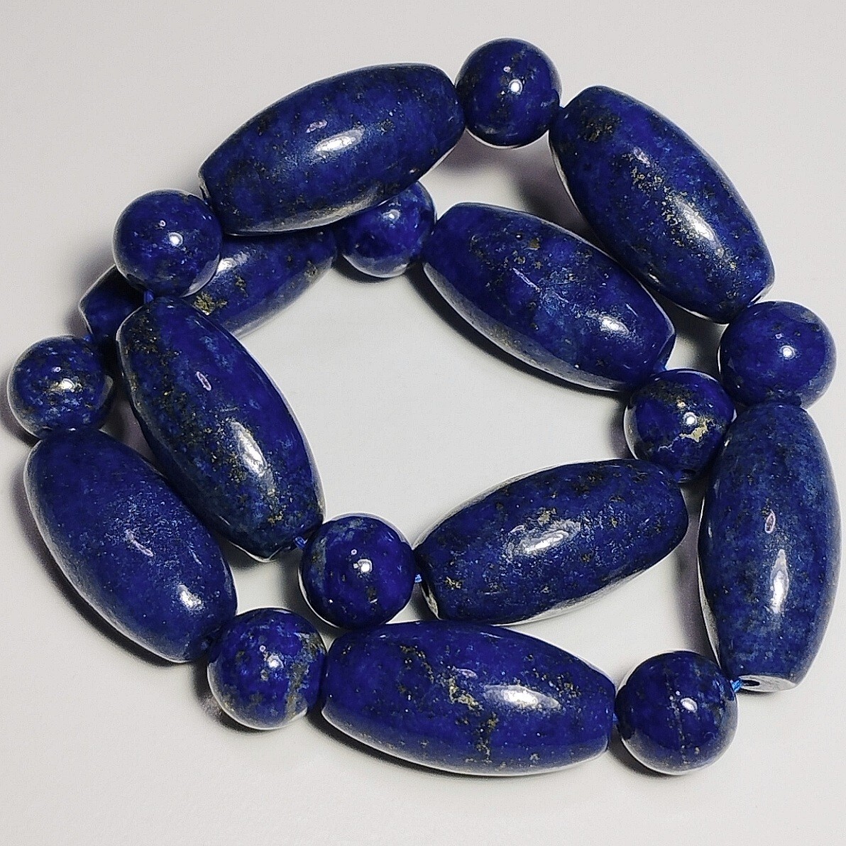 パイライト ラピスラズリ天珠 樽型 丸玉