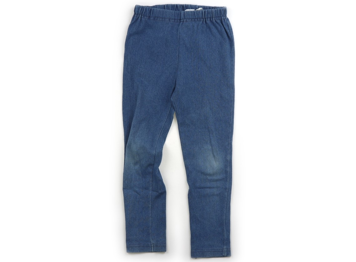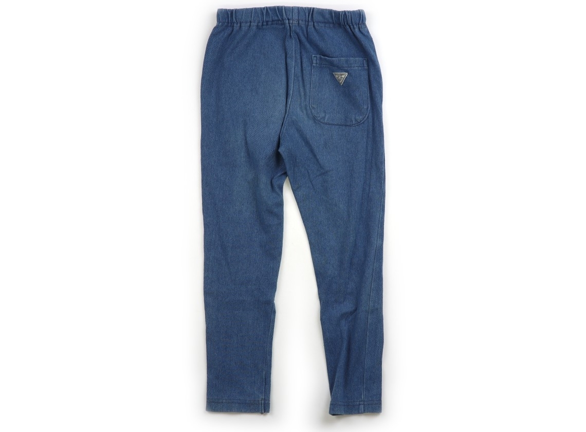 ウエストのゴムは交換穴があります。カットデニム素材。膝に伸びや薄汚れがありますが、まだまだ活躍してくれそうです。