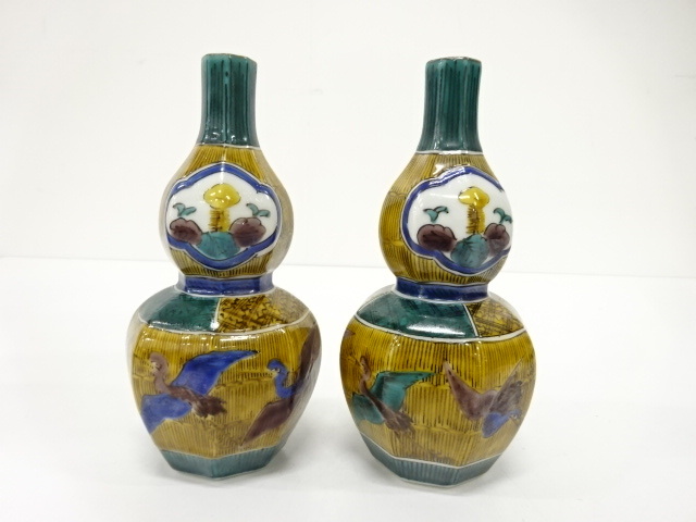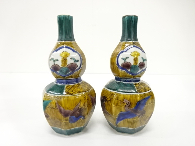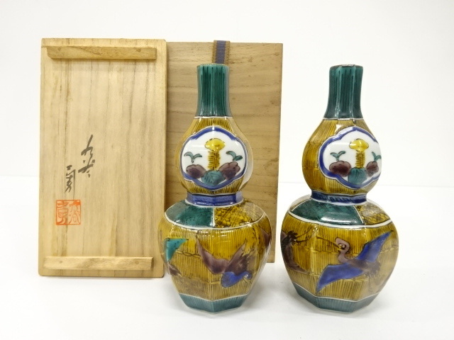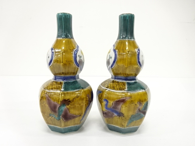 九谷焼 谷口勇造 吉田屋風 鶴の画 徳利 一対 (ID1D-020)