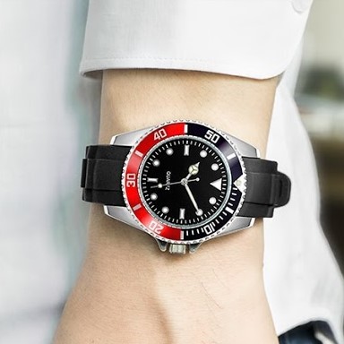 セイコー製ムーブメント採用|高品質ビジネス時計 40mmベゼル ブラック・レッド