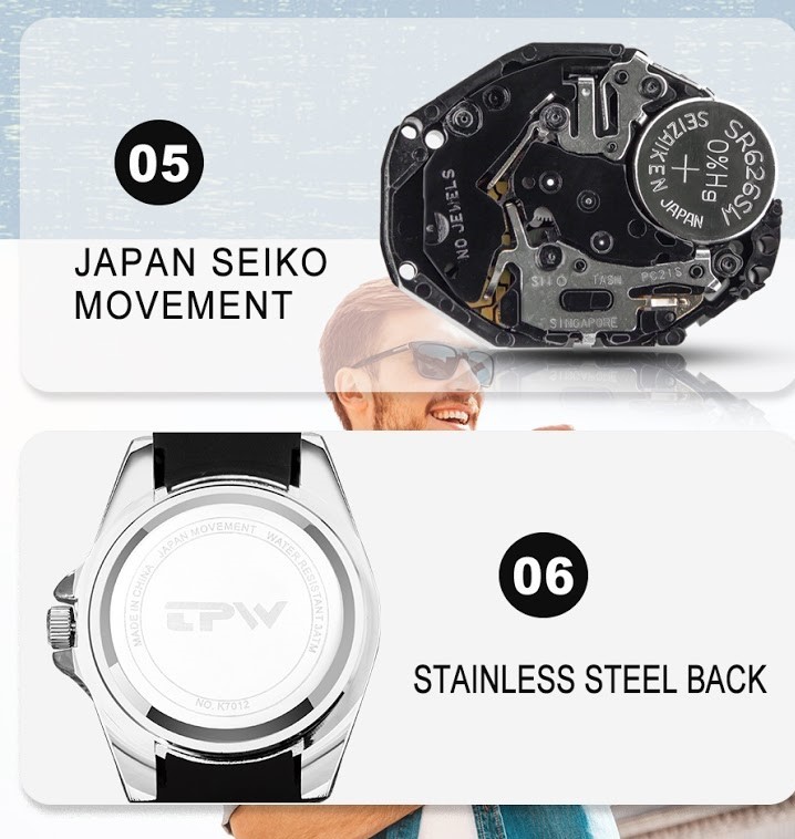 日本製(SEIKO)ムーブメントを採用した、高品質なビジネスウォッチです。
