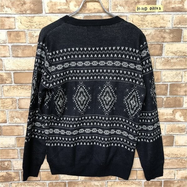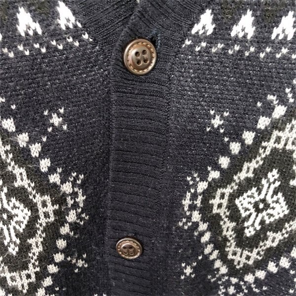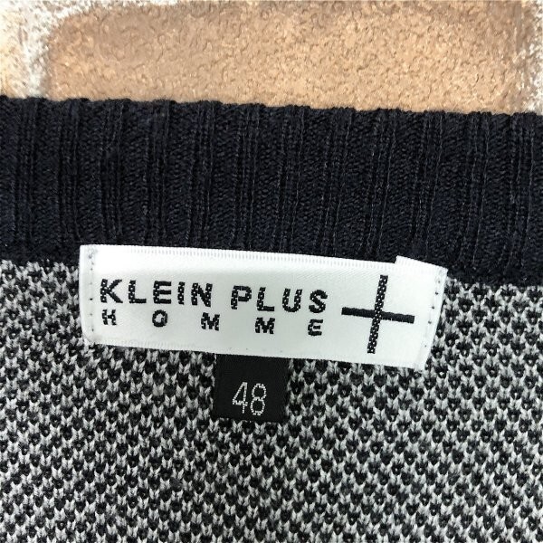 KLEIN PLUS クランプリュス メンズ 柄編み ノルディック Vネック ニット カーディガン 48 ネイビー × ホワイト