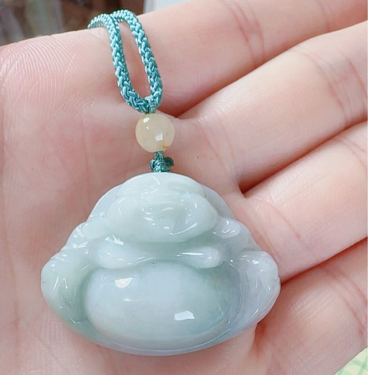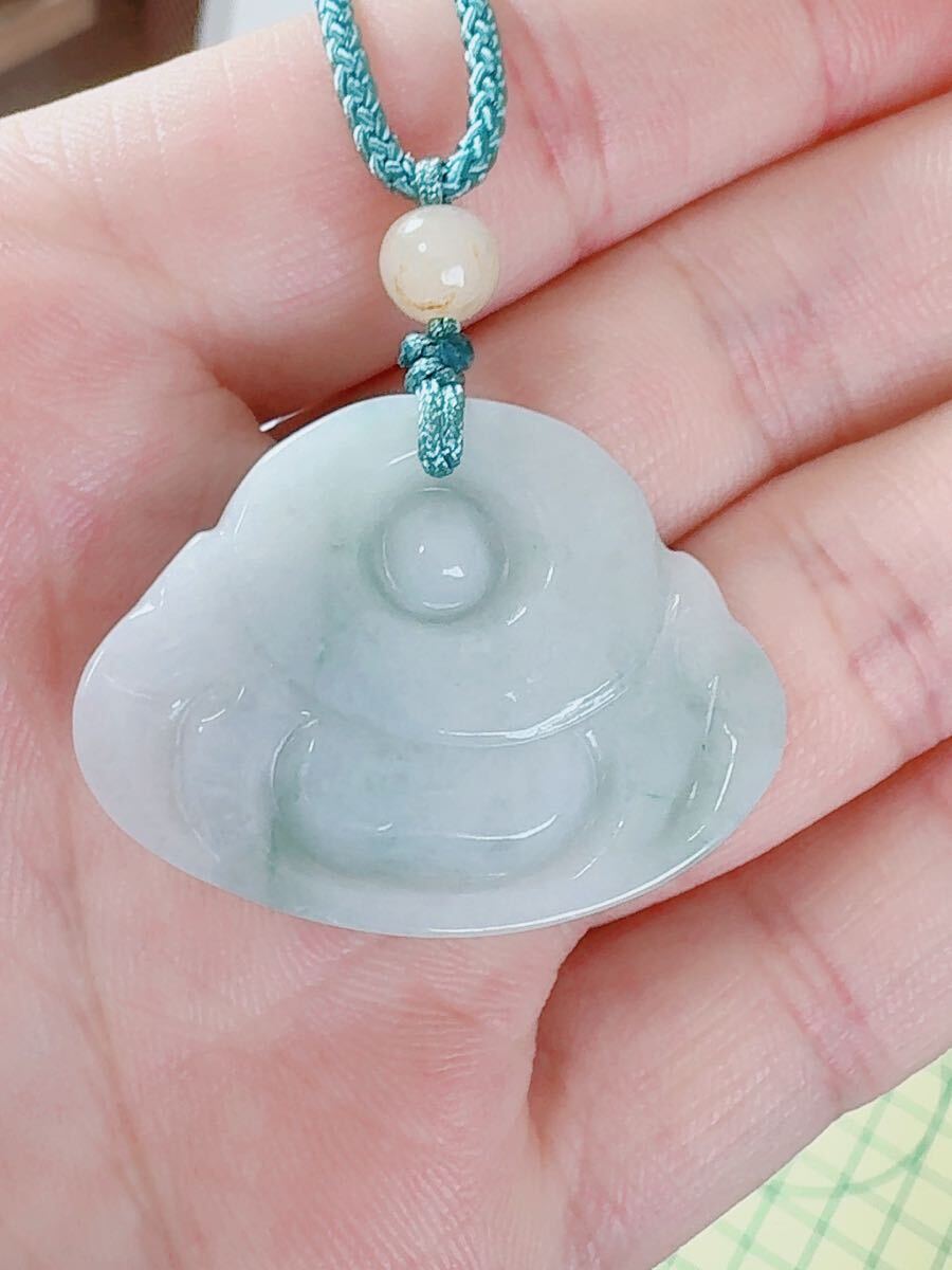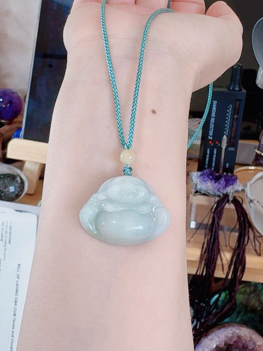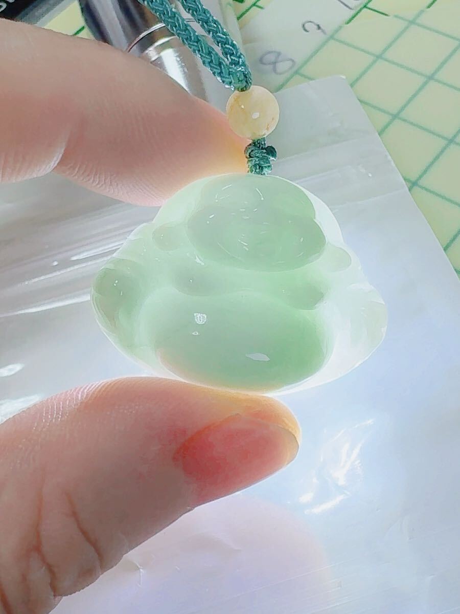 R2-01189天然本翡翠《本物保証》 厚て仏様 淡緑色ひすいペンダント 一点物 魔除け 昇進 成功 風水 金運 財運 幸運 幸福 縁起物