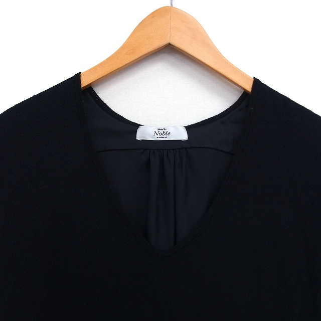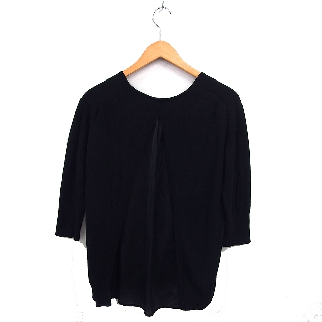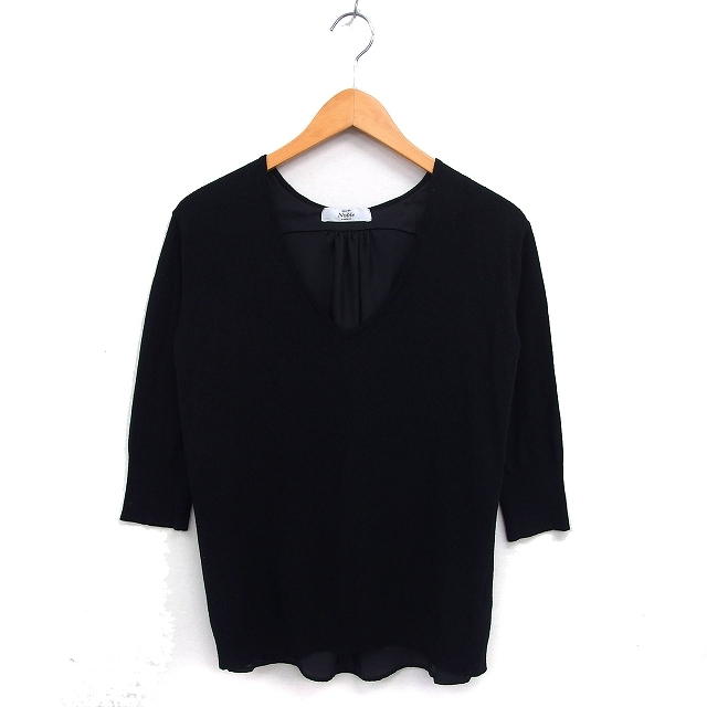 スピック&スパン ノーブル Spick&Span Noble Vネック ニット セーター バックロング 切替 リブ 七分袖 38 黒 ブラック /NT9 レディース