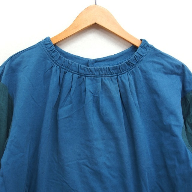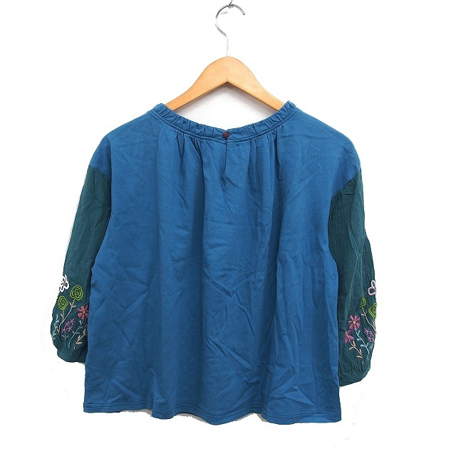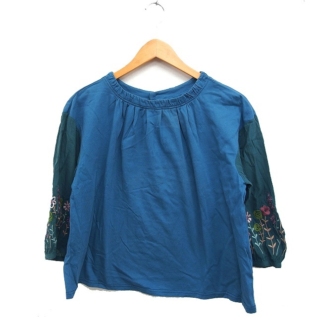 ホコモモラ JOCOMOMOLA 花柄刺繍 カットソー 7分袖 丸首 コットン 綿 40 ブルー 青 グリーン 緑 /FT20 レディース