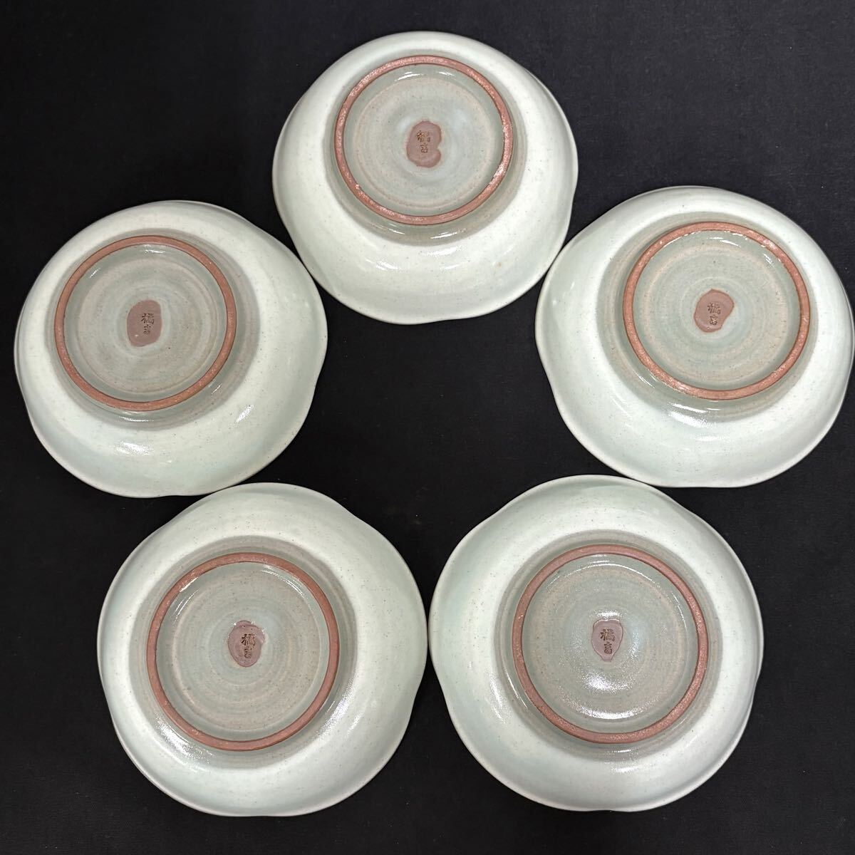 未使用 橘吉 たち吉 花野 煮物鉢 5客揃 粉引 多用鉢 輪花鉢 向付 小皿 小鉢 和食器 美品 (08307E
