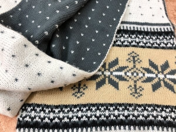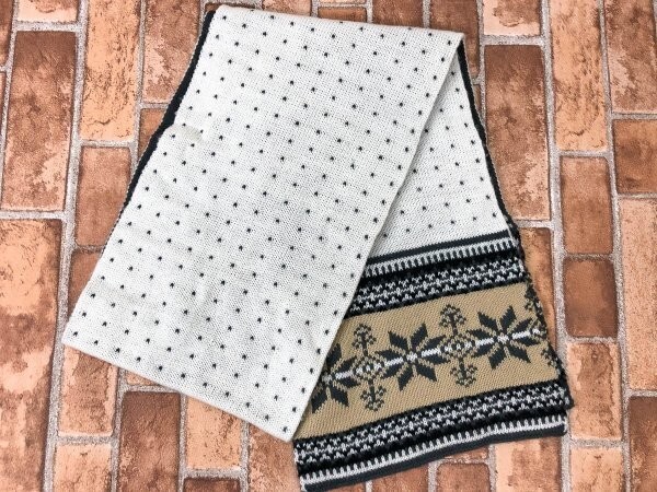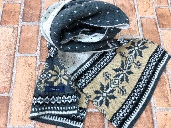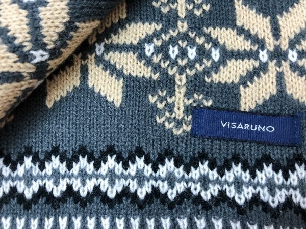 VISARUNO ビサルノ ノルディック柄 ニットマフラー 白グレー