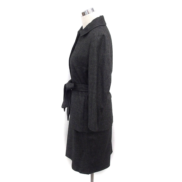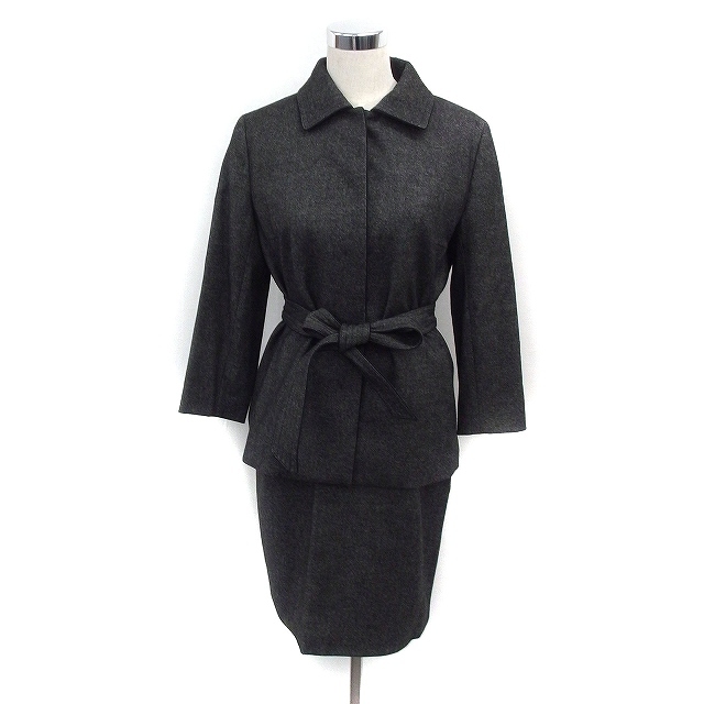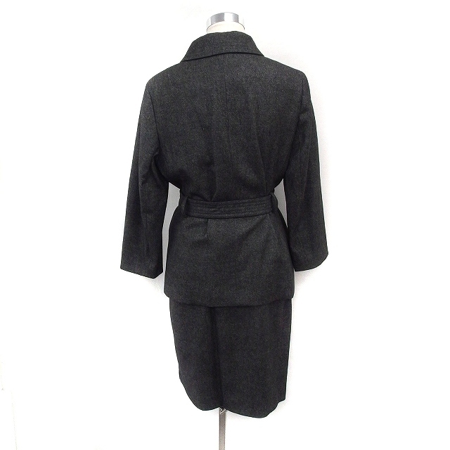 23区 オンワード樫山 スカートスーツ ステンカラージャケット & ミニ 台形スカート ツイード 44 46 チャコールグレー /FT1 レディース