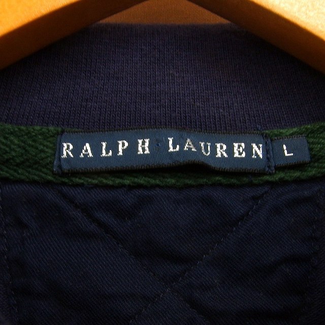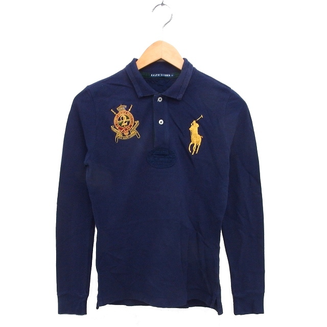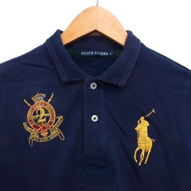 ラルフローレン RALPH LAUREN 国内正規品 ポロシャツ ビッグポニー ステンカラー コットン 綿 スリット 刺繍 長袖 L 紺 ネイビー