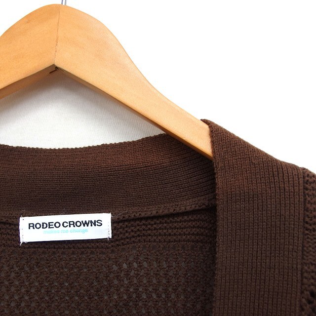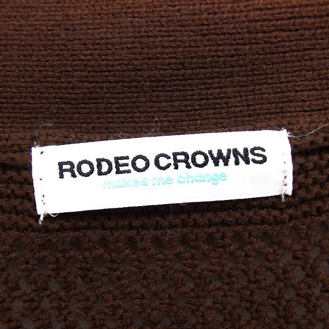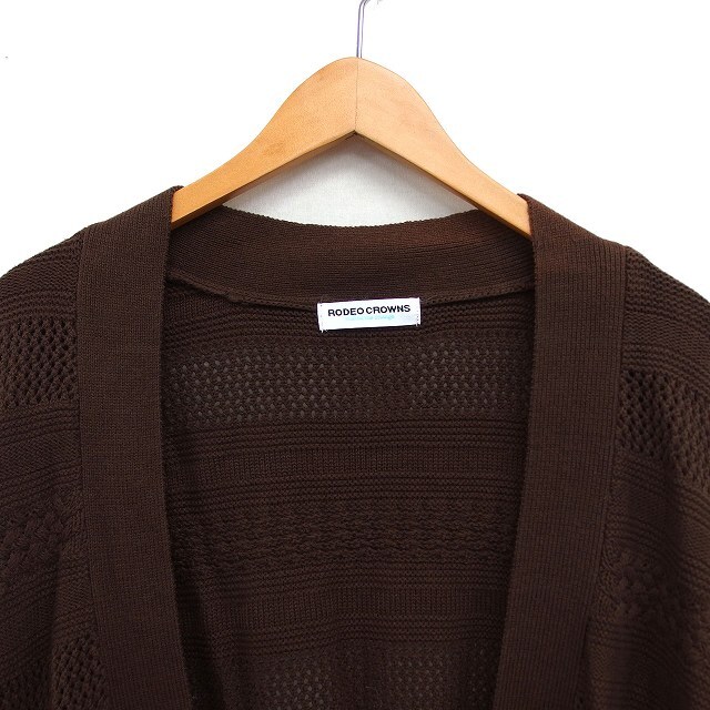ロデオクラウンズ Rodeo Crowns オープン ロング カーディガン ニット リブ ゆったり コットン混 長袖 F 茶 ブラウン /NT28 レディース