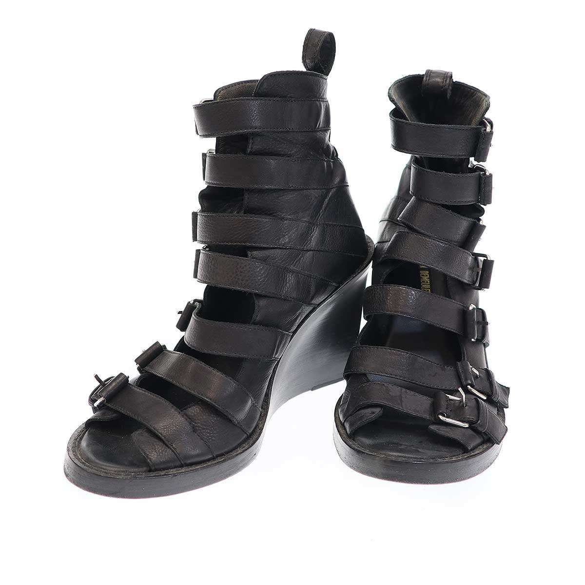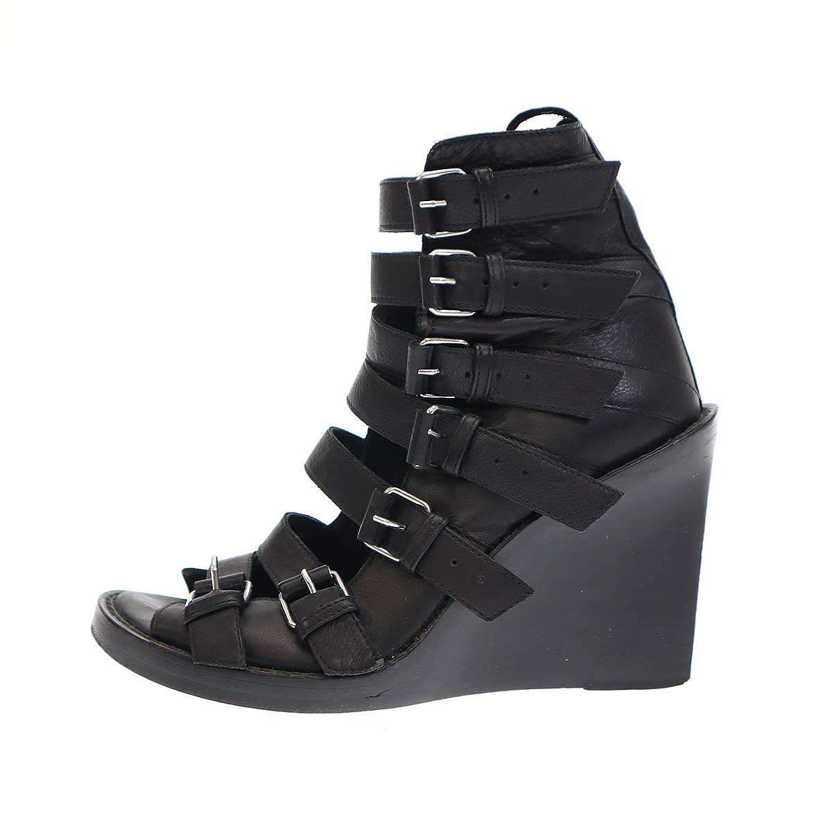 ANN DEMEULEMEESTER アンドゥムルメステール ウェッジソール ベルテッドデザインブーツ サンダル ブラック 37 ITLR7KDGML6Q