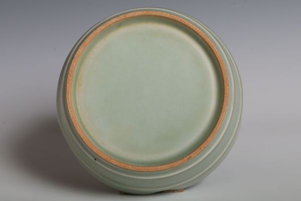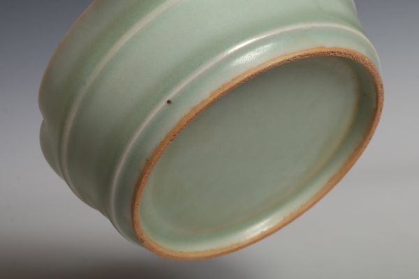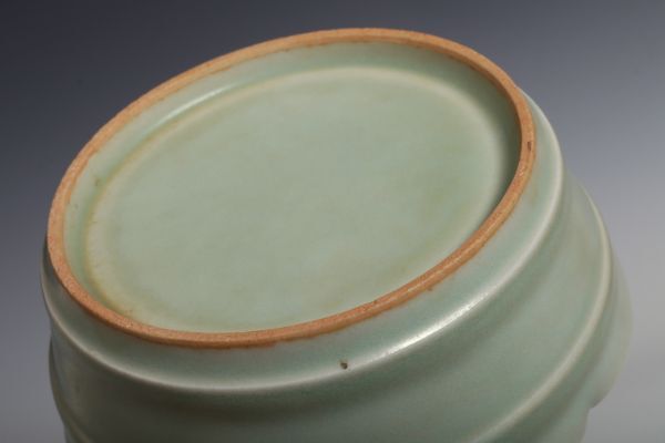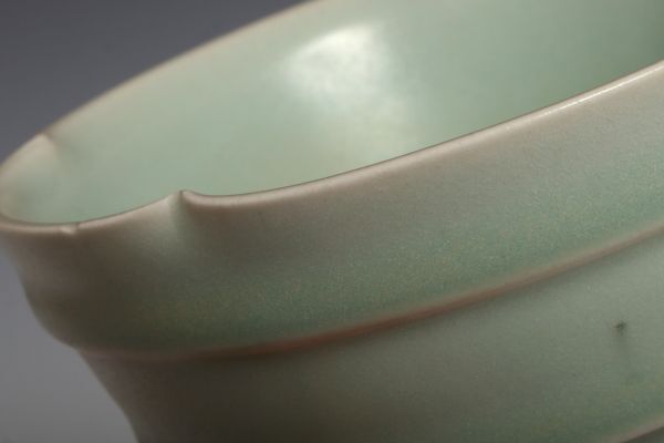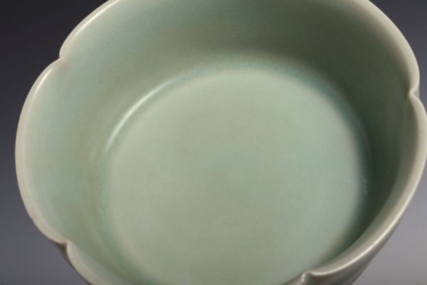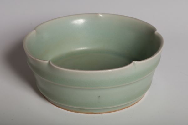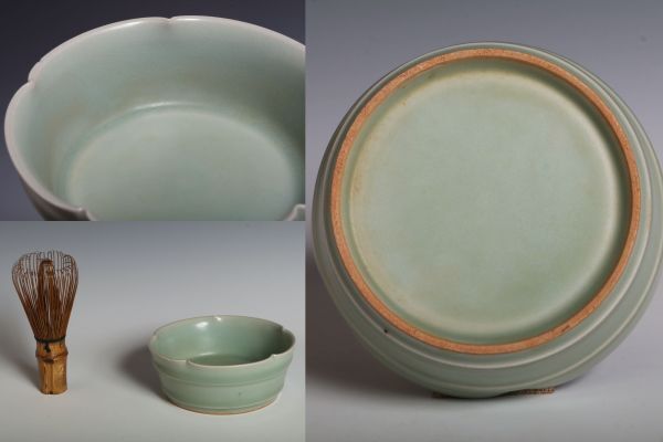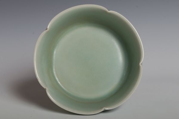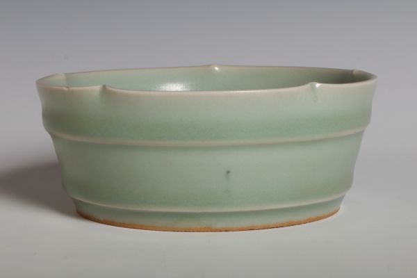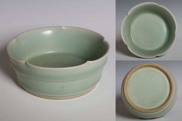 N26130 中国陶器 青磁花口盤 筆洗 水盤 約11.5cm 書道具 文房具 検:青磁 青瓷 龍泉窯 汝窯 中国 古玩 唐物