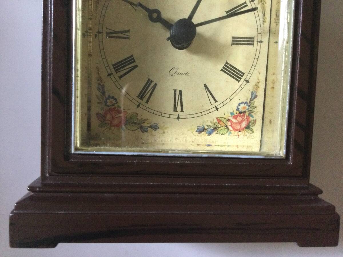 90' アンティーク ヴィンテージ 花柄 ヨーロッパ調ーブルウオッチ 置時計 クォーツ 動作問題無し