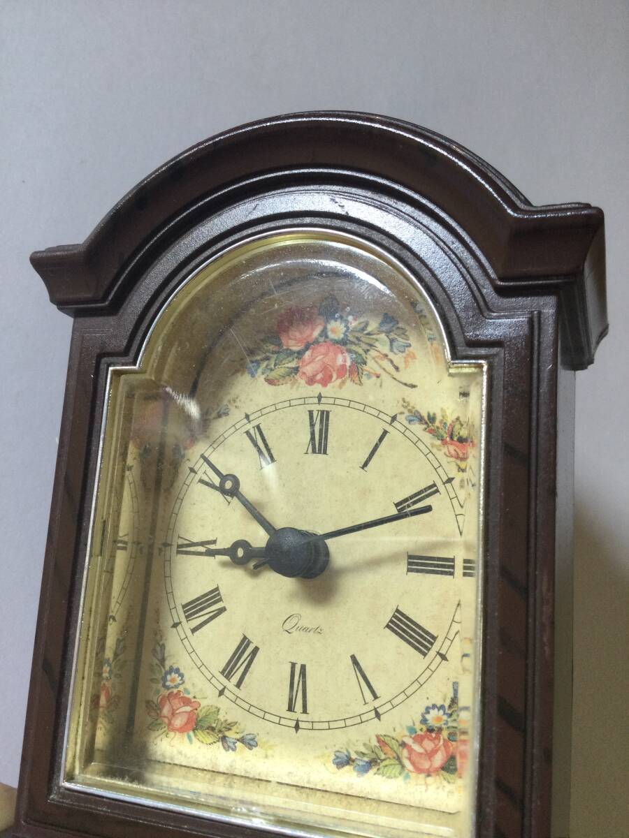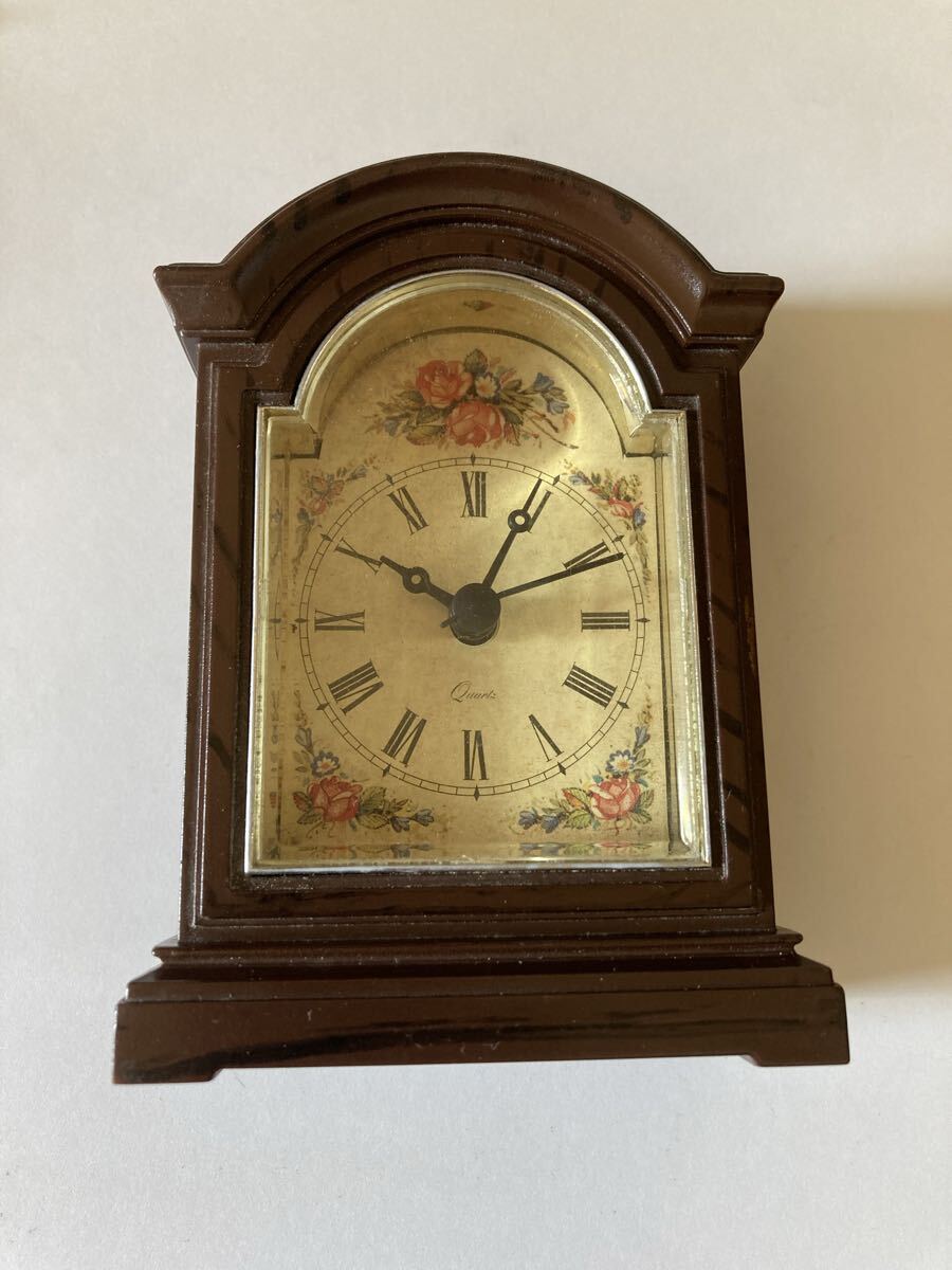 90' アンティーク ヴィンテージ 花柄 ヨーロッパ調テーブルウオッチ 置時計 クォーツ 動作問題無し