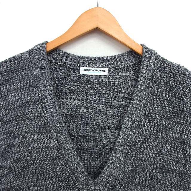 ロデオクラウンズ Rodeo Crowns ニット ベスト Vネック スリット メランジ コットン混 F ノースリーブ 黒 ブラック /NT22 レディース