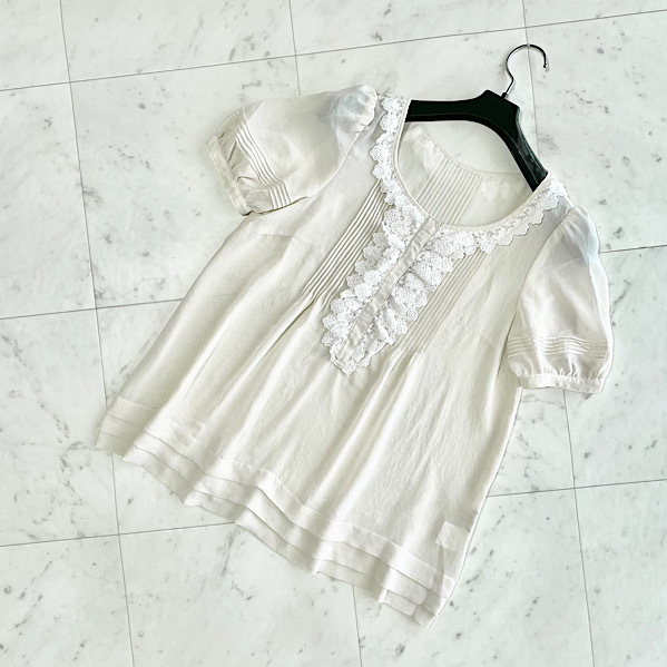 Tiara ティアラ ブラウス 半袖 ベージュ 白 ホワイト        ①