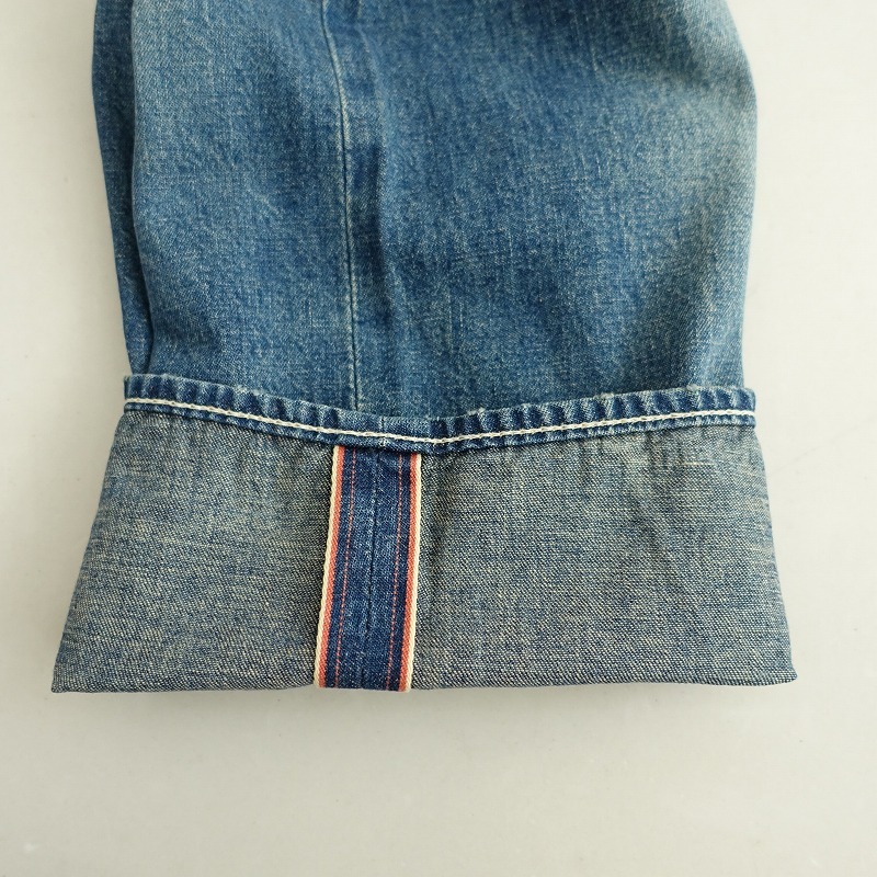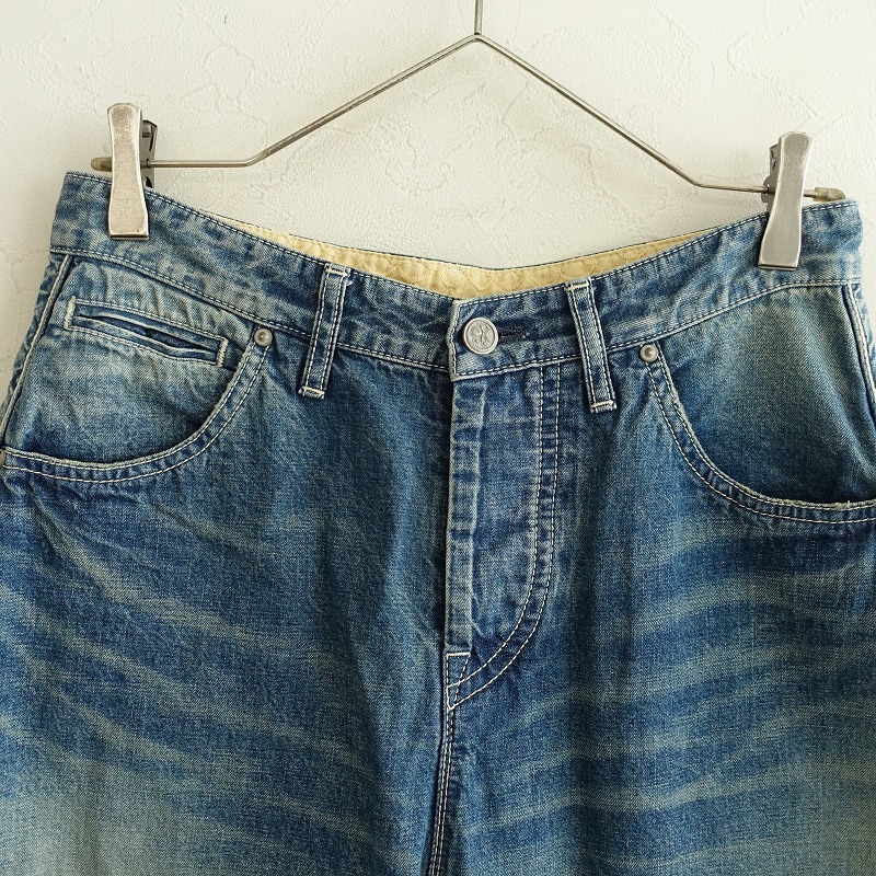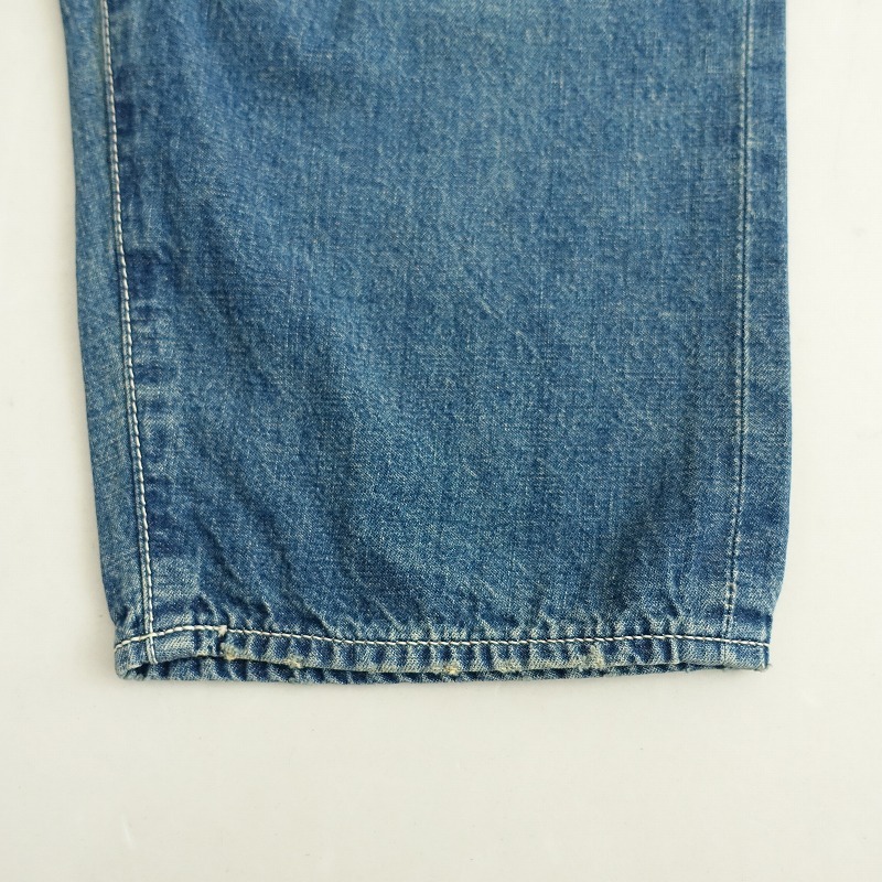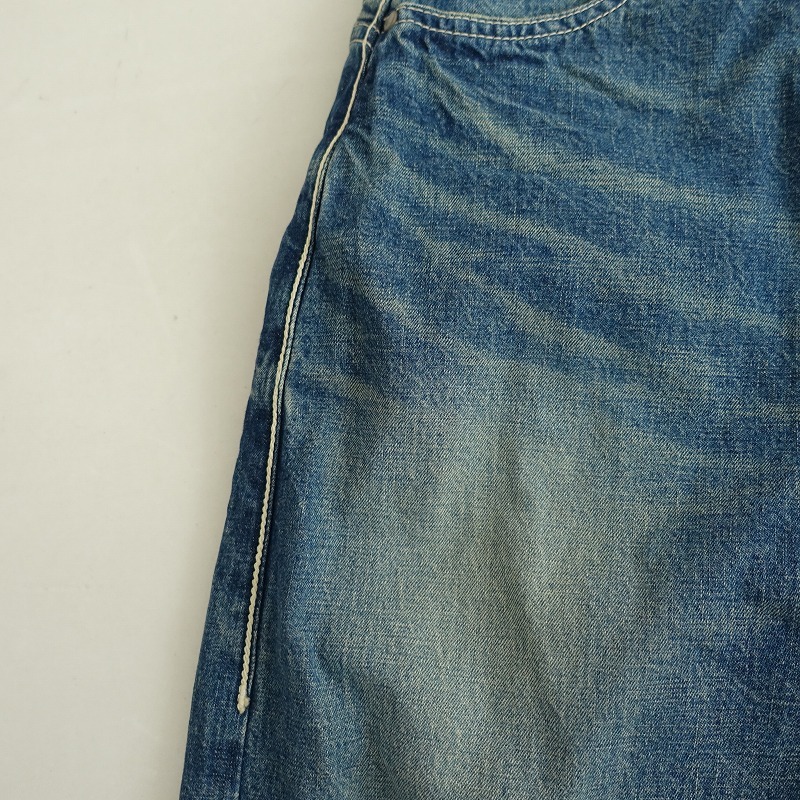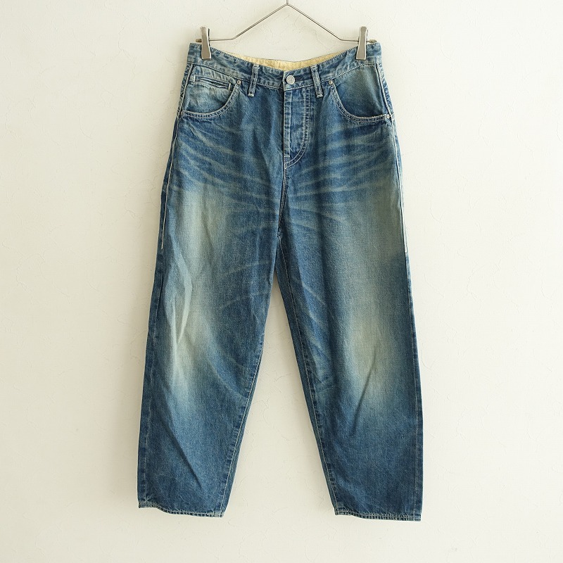 2024年コレクション mina perhonenのevery day ロールアップデニムです。カラーはインディゴブルーのセルビッチデニム素材で、ユーズド加工やダメージ加工が施されております。フロントボタン開閉式で、ウエスト&ヒップの左右両サイドにポケットとフロント右ウエストにコインポケットがあり、バック右腰にレザーパッチがあしらわれており、ウエストう&ポケット内袋の一部に「mermaid」のテキスタイル刺しゅうがあしらわれております。定価(メーカー希望小売価格)41800円の商品です。 |