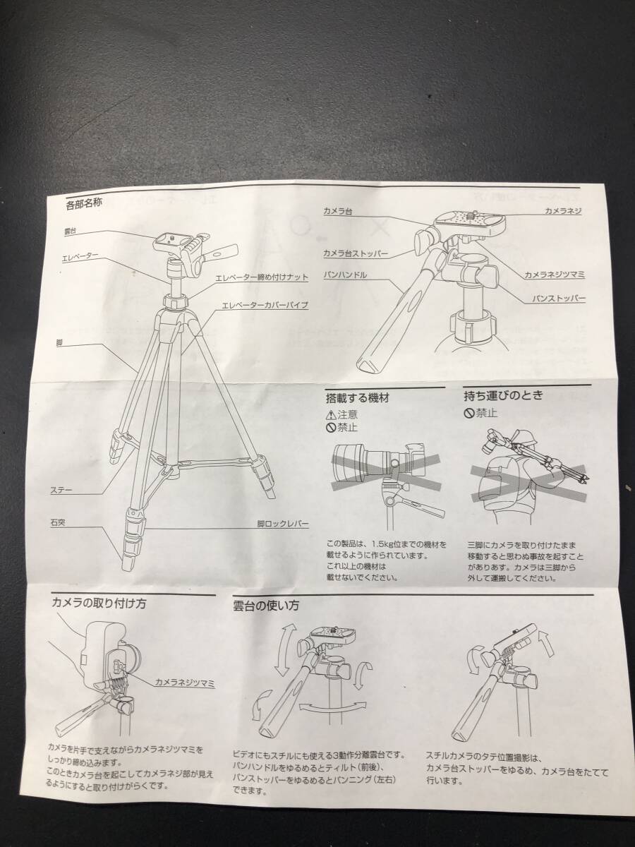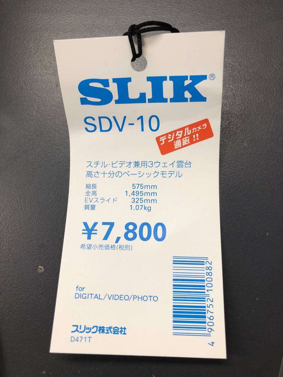 | 商品名 | SLIK カメラ 三脚 3段階 レバー式 SDV-10 撮影機材 カメラ周辺機器 取扱説明書付き |
