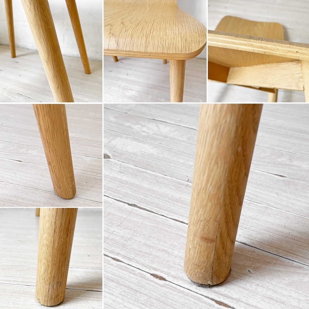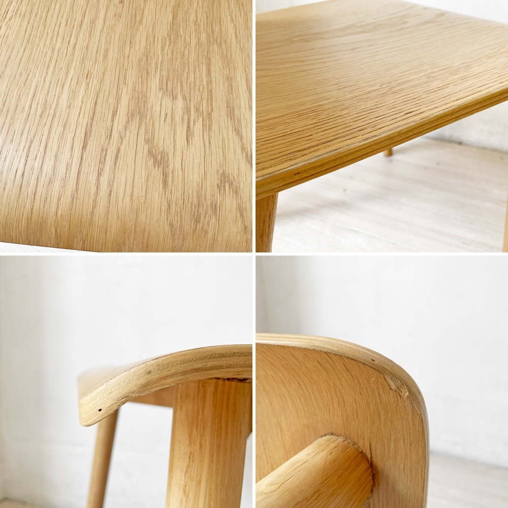 | コンディション | 使用に伴い、傷や擦れ、打痕や色ムラ、プライウッド表面の亀裂や割れによる凸凹、落とし切れない汚れ、座面裏の突板の僅かな欠けがございます。やや使用感はございますが、実用に問題となるダメージはございません。上記のコンディションを鑑みてお求めやすい価格での出品とさせて頂います。 ※特筆すべきコンディションは出来るだけ記載させて頂きますが、細かい擦れや傷、汚れ等を完全にお伝えする事は出来ません。画像をご確認の上、ご入札をご検討下さいませ。 ※取扱説明書や保証書等は記載が無い限り付属いたしません。 |