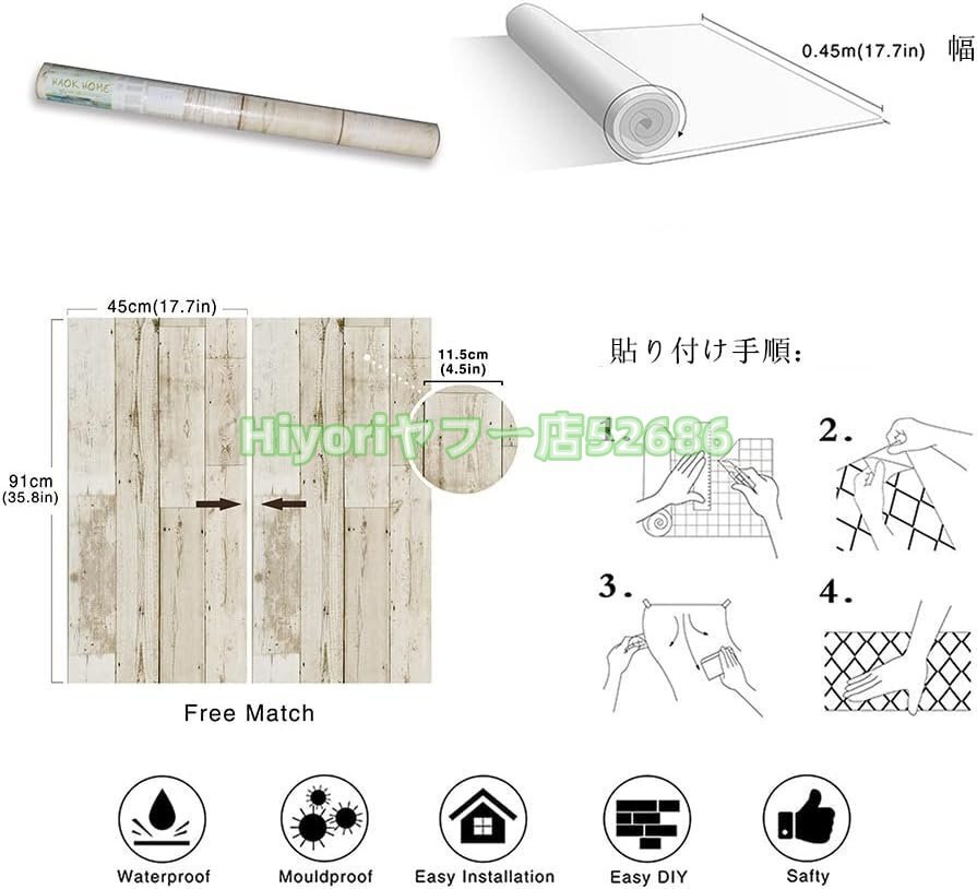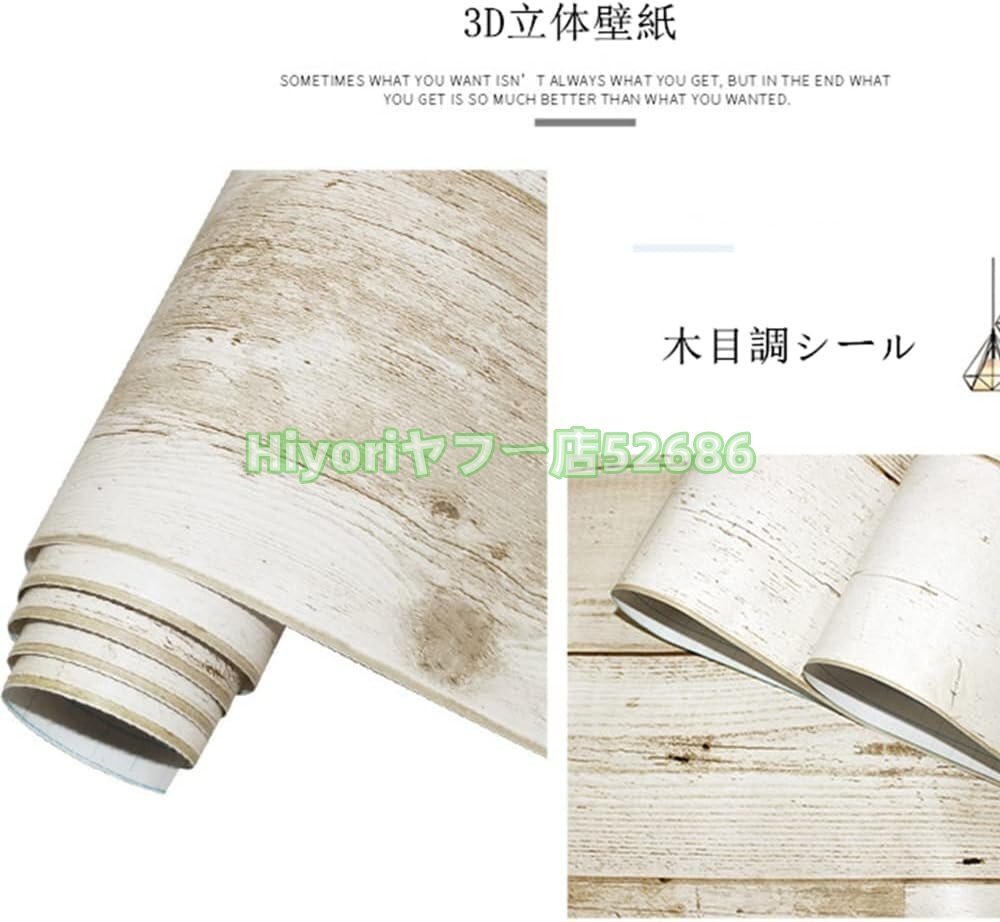 壁紙シール はがせる壁紙 44.5cmx40m 木目 防水 リメイクシート 接着剤不要 DIYシート 防カビ ウォールステッカー 地中海風 のり付き