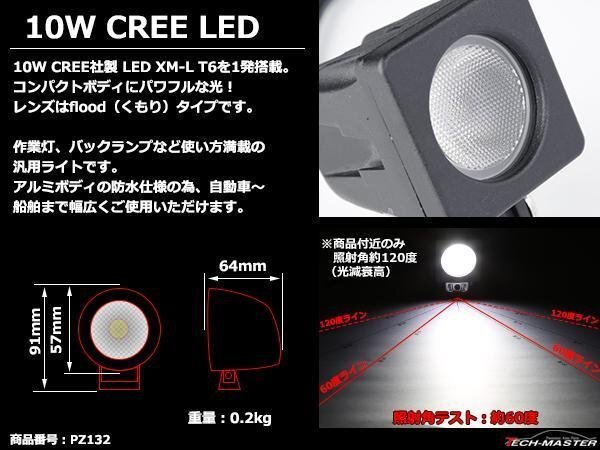 ■商品コード PZ132 ■商品タイトル 汎用10W CREE LED×1発 くもりレンズ 作業灯 ■発光色 6000K ホワイト ■数量 1個 ■防水性能 保護等級:IP67 ※レンズ周りに水がたまる使用方法は使用不可 ■特徴 10W CREE LED XM-L T6を1発搭載。 コンパクトボディにパワフルな光。 レンズはflood(くもり)タイプです。 作業灯、バックランプなど使い方満載の汎用ライトです。 アルミボディの防水仕様の為、自動車?船舶まで幅広くご使用いただけます。 ■対応電圧 DC9?32V ■照射角 約60度 ※商品付近のみ照射角約120度(光減衰高) ■その他商品 作業灯(ワークライト) リレーハーネス LEDコントローラー ヒューズ |