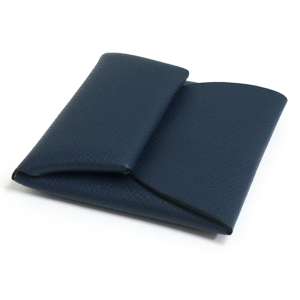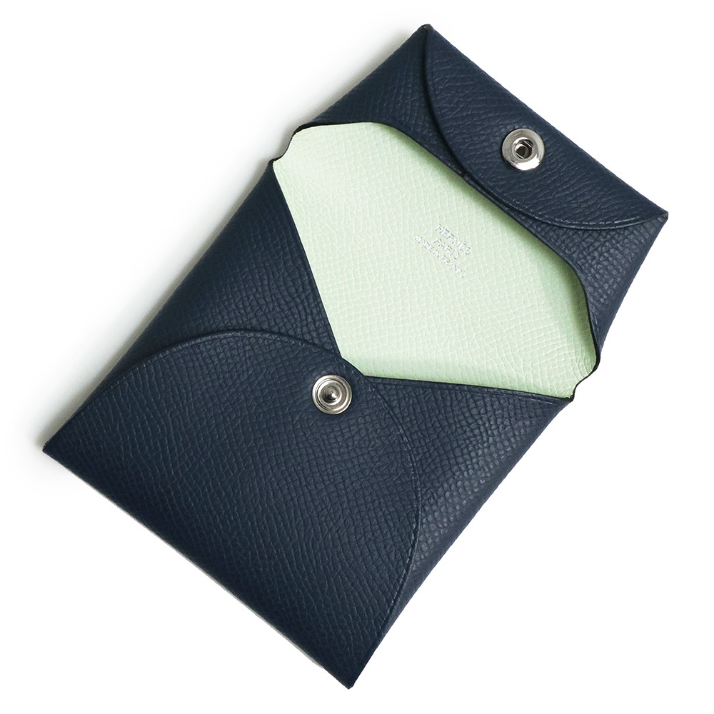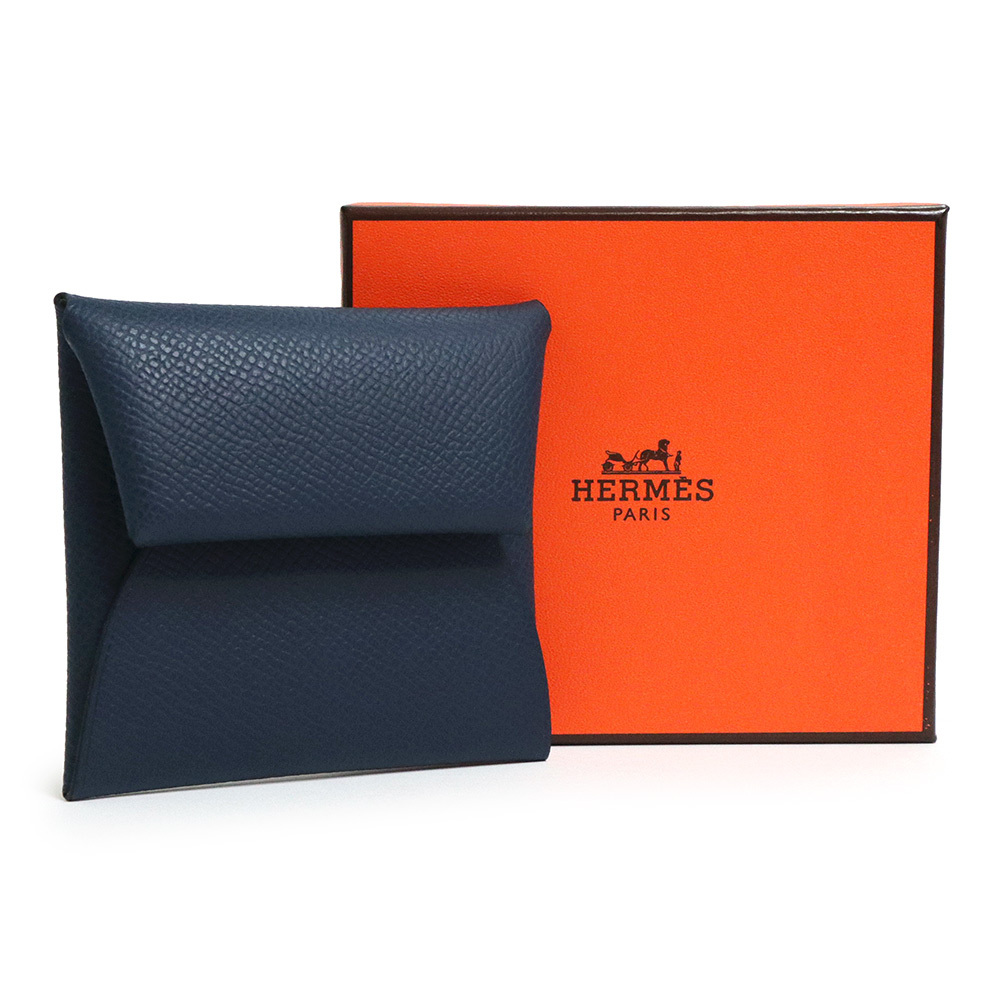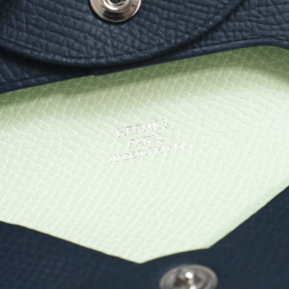 (新品・未使用品)エルメス HERMES バスティア GM ヴェルソ コインケース 小銭入れ 財布 エプソン レザー ネイビー ライトグリーン W刻印
