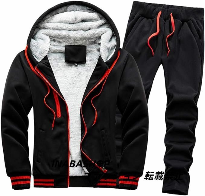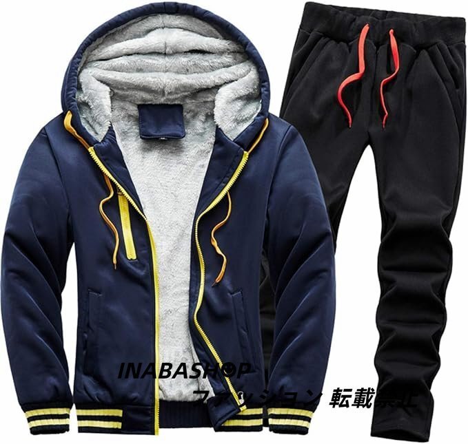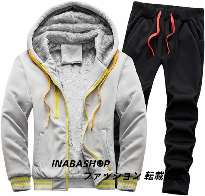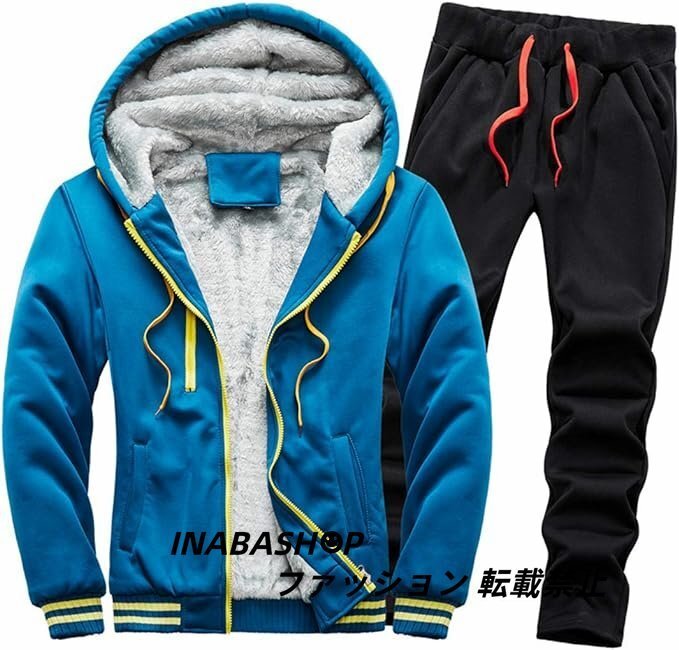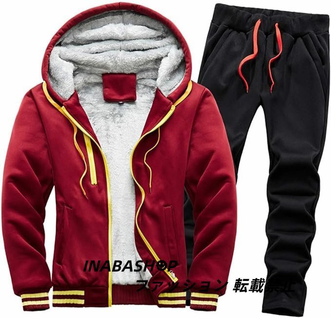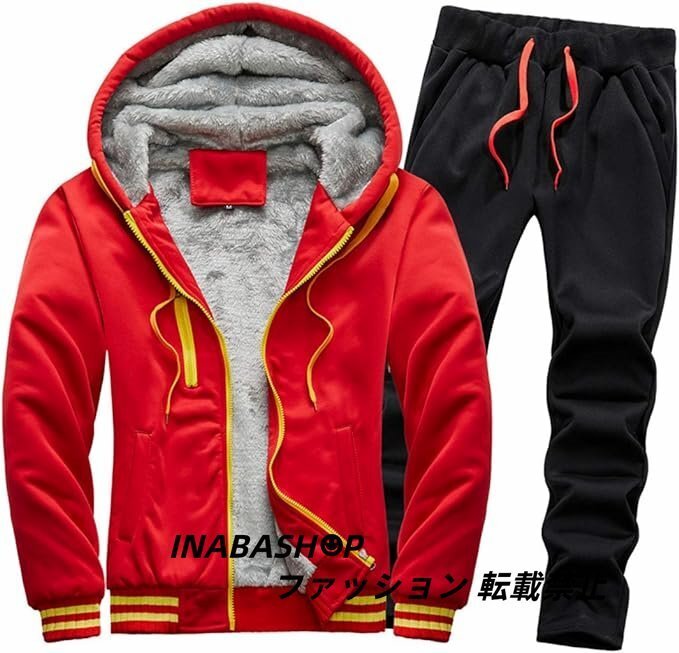 裏ボアパーカー セットアップ メンズ ジャージ2点セット ジップ スウェット 裏起毛 トレーナー フード付き ゆったり 厚手防寒 大きいサイズ