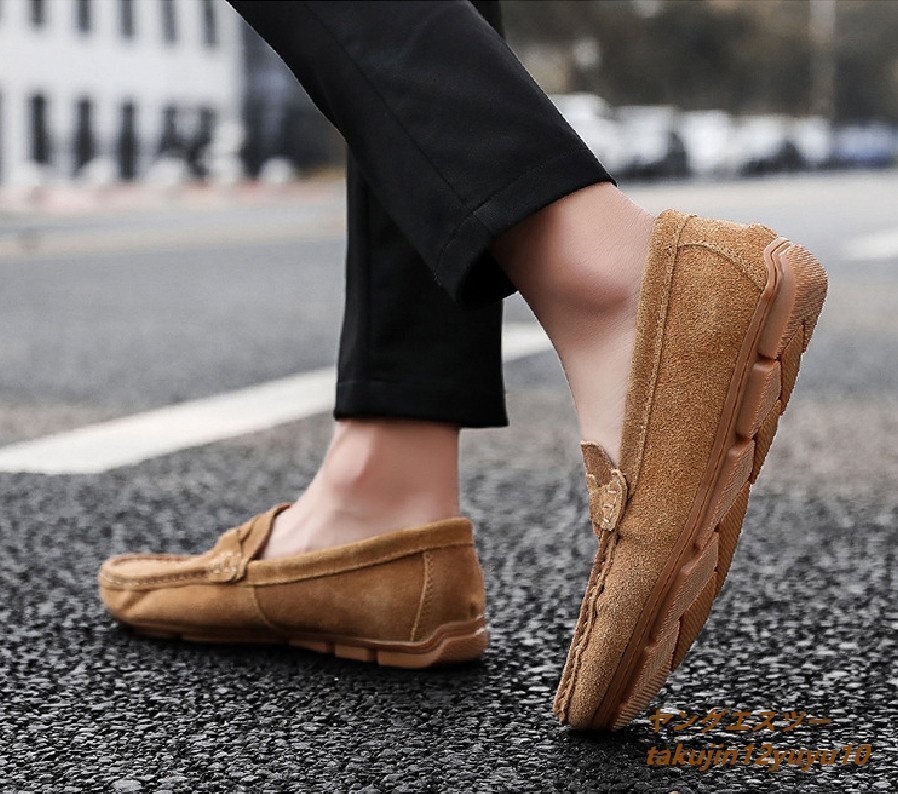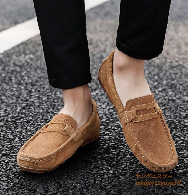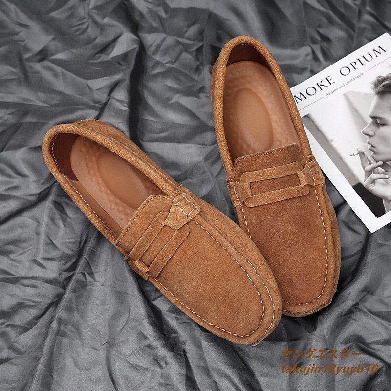 人気新品■ローファー スリッポン 高級牛革 レザーシューズ メンズ ドライビングシューズ 本革 スエード革 快適 お洒落四色ブラウン 27.0cm