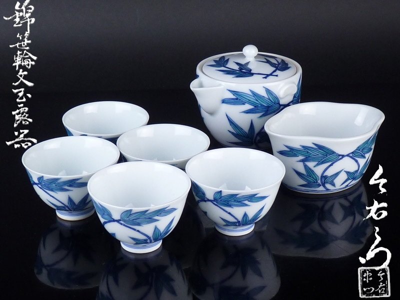 【都屋】s9 十二代 今泉今右衛門「錦 笹輪文玉露器」共箱 湯呑 茶碗 汲み出し 湯冷し 急須 茶道具 有田焼