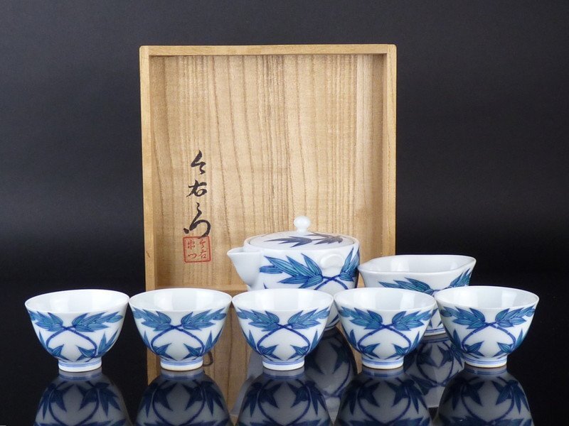 それぞれの高台と急須の内側に汚れがありますが、その他の状態は良好です。