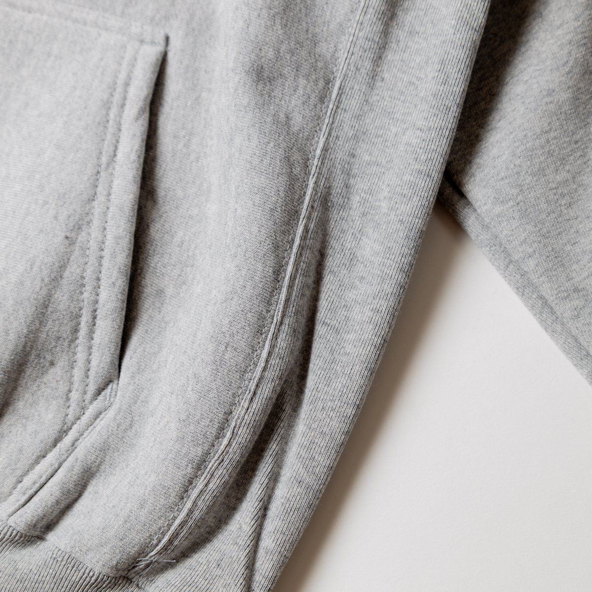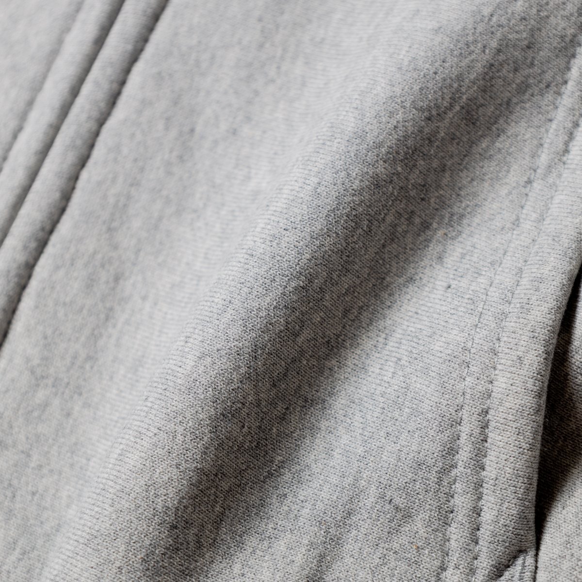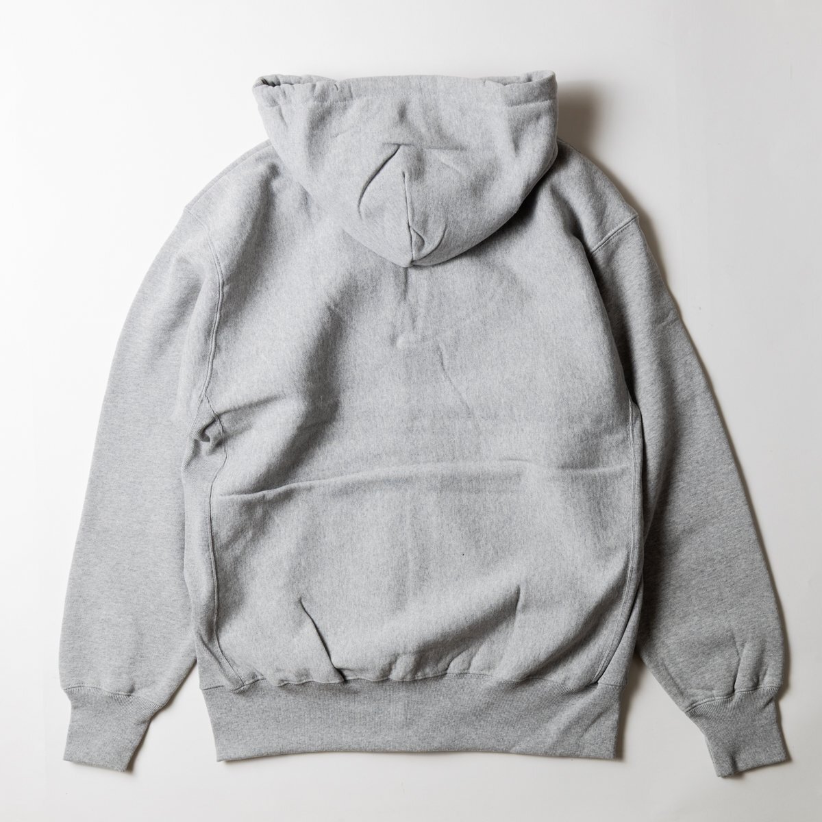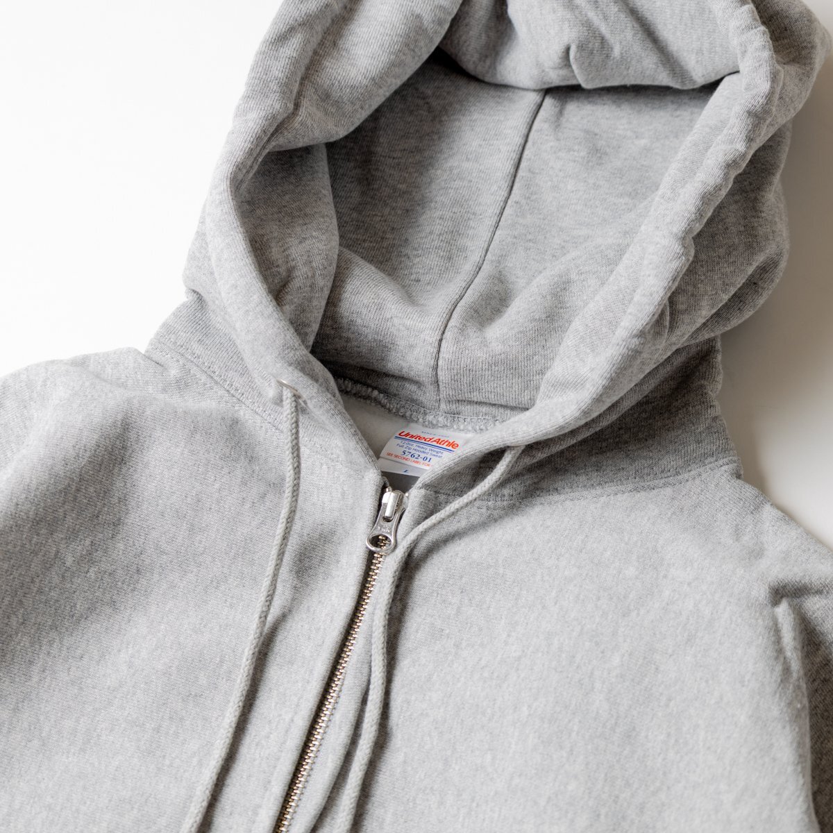 オープンエンド糸特有のドライな質感が特徴の12.0オンス裏起毛フルジップパーカー。