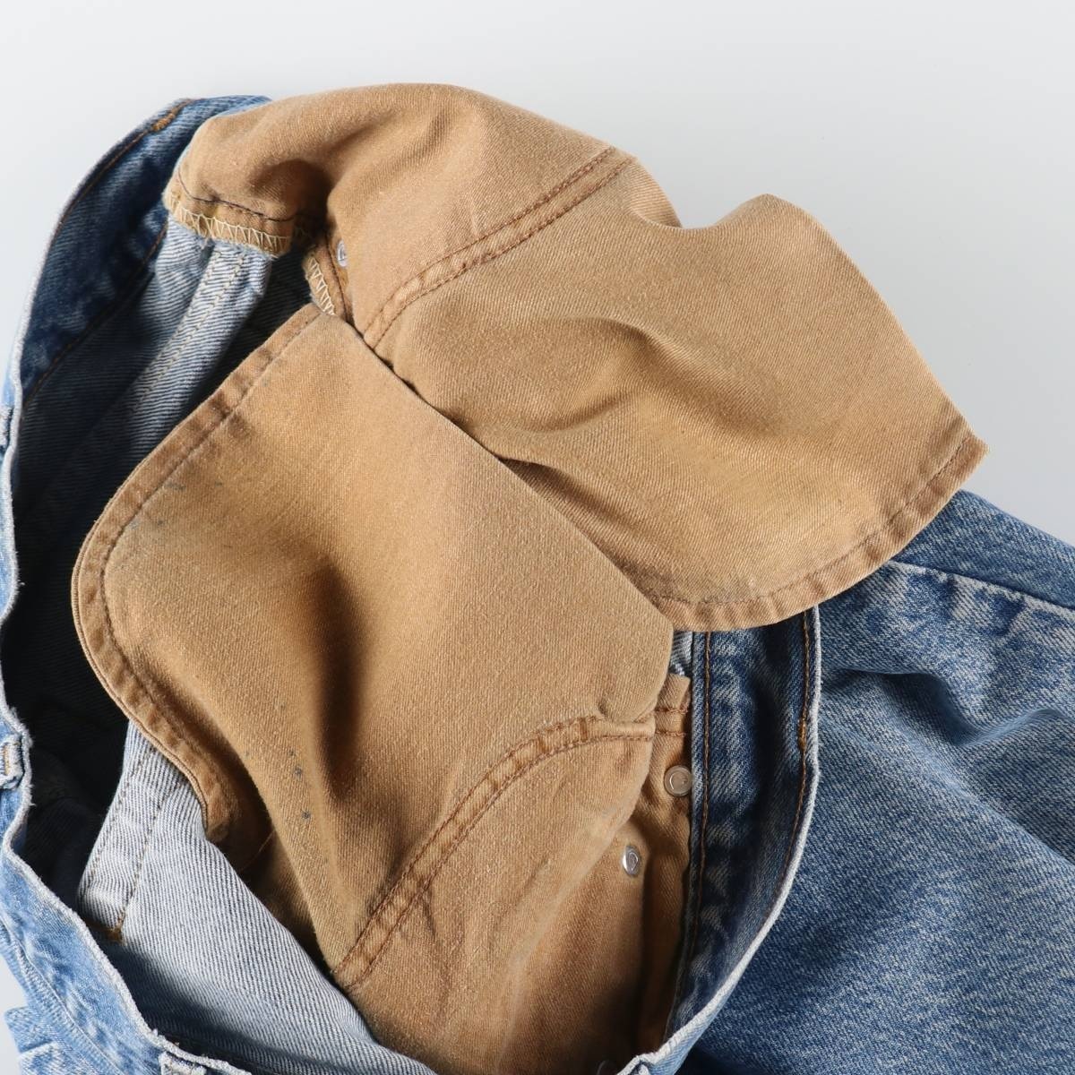 着用感: メンズw35 表記サイズ: 不明 ウエスト: 89cm 股上: 31.5cm 股下: 77.5cm もも周り: 68cm 裾周り: 37cm ![]() | ![]() ランク:C USEDデニムですので使用感、擦れ、色落ちなどございますが、まだまだご愛用していただけます。 古着という事をご理解の上ご注文よろしくお願いします。 【状態追記】 ●前、全体的に汚れあり ●前、左右ポケット内袋に汚れ ●前、左右下腹部・左裾に擦れ ●後、ウエスト・ヒップ・左右ふくらはぎ・左右裾に汚れ ●後、右裾・右裾内に裂け ●後、左裾・左右裾内に擦れ ●内側、左右裾に汚れ |