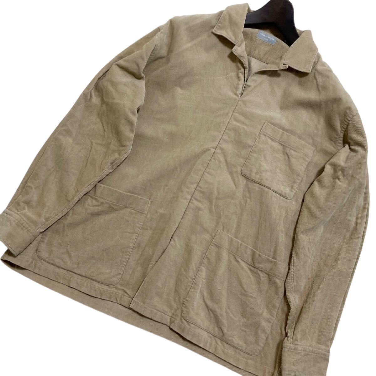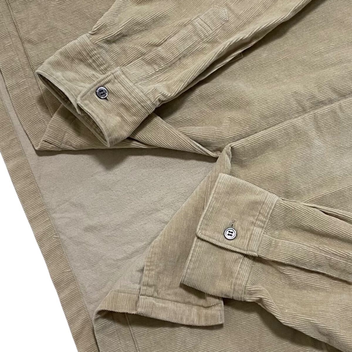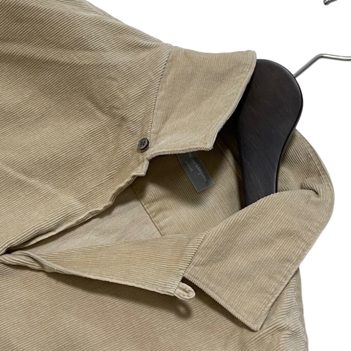 コムデギャルソン オムのコーデュロイカバーオールジャケット。希少なAD1995。選び抜かれたコットンを贅沢に。世界観に溺れることができる個性的ワイドシルエット。洗練されたシルエットと芸術的なひねりが効いたアイテム。クリエイティビティとクラシックエレガンスの融合。サイズ表記はありませんのでメンズフリーとして。カラーはライトベージュ系。日本製。国内正規品。プルオーバータイプ。フロントスリット入り。両サイドにオープンポケット。