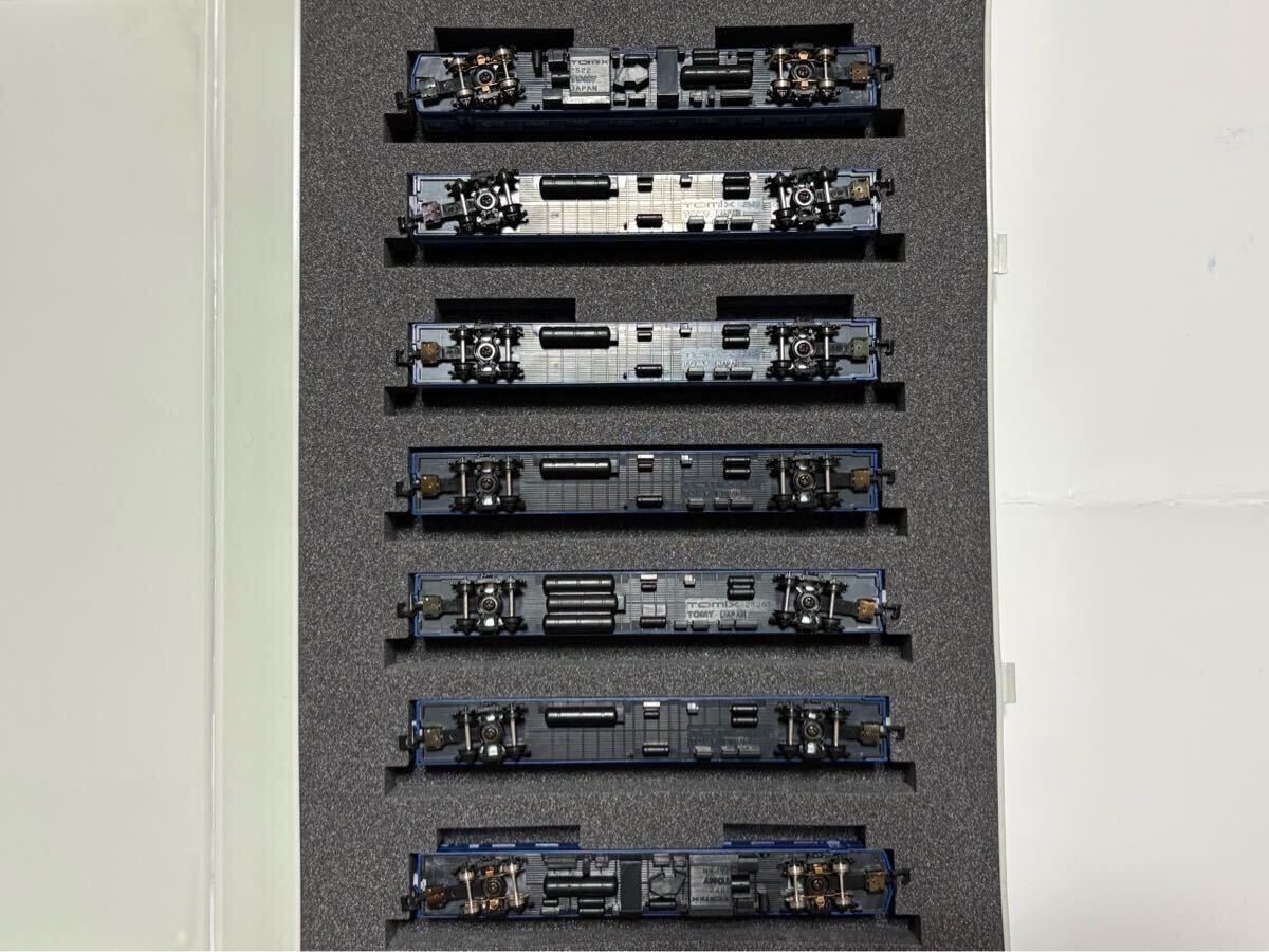 TOMIX製14系寝台車のバラ製品で組成した、さくら号をモデルとした7両セットです。内訳は、スハネフ14×2、オハネ14×3、オロネ14×1、オシ14×1です。友人が新品バラ製品で組成した物を譲り受けました。私のところでは活躍しませんでしたのでお譲りいたします。発送はおてがる配送 宅急便80サイズを予定しております。他の発送方法のご希望があれば、出来る限り対応いたします。緩衝材、梱包材は再利用品を使用致します。勤務の都合上、落札者様への連絡・発送が遅くなることがございます。ご了承下さい。