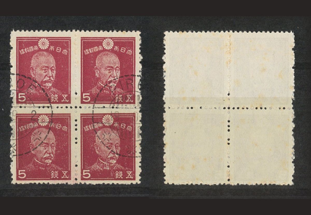 南方蘭印単片等切手 東郷5銭 PIROE 19.9.2 田型ブロック as is 使用済