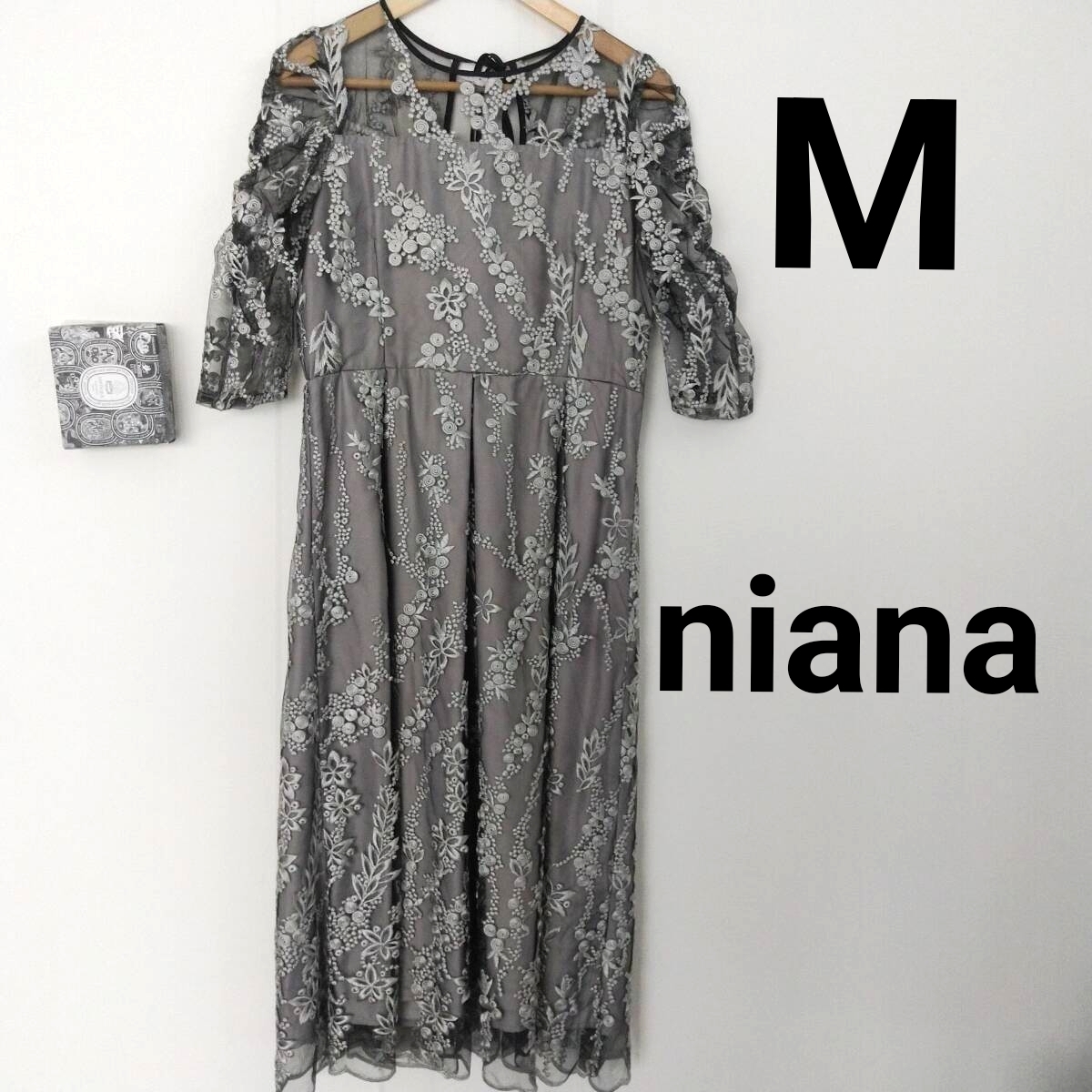 niana(ニアナ)の 刺繍レース×バックリボン パーティードレス Mサイズです。