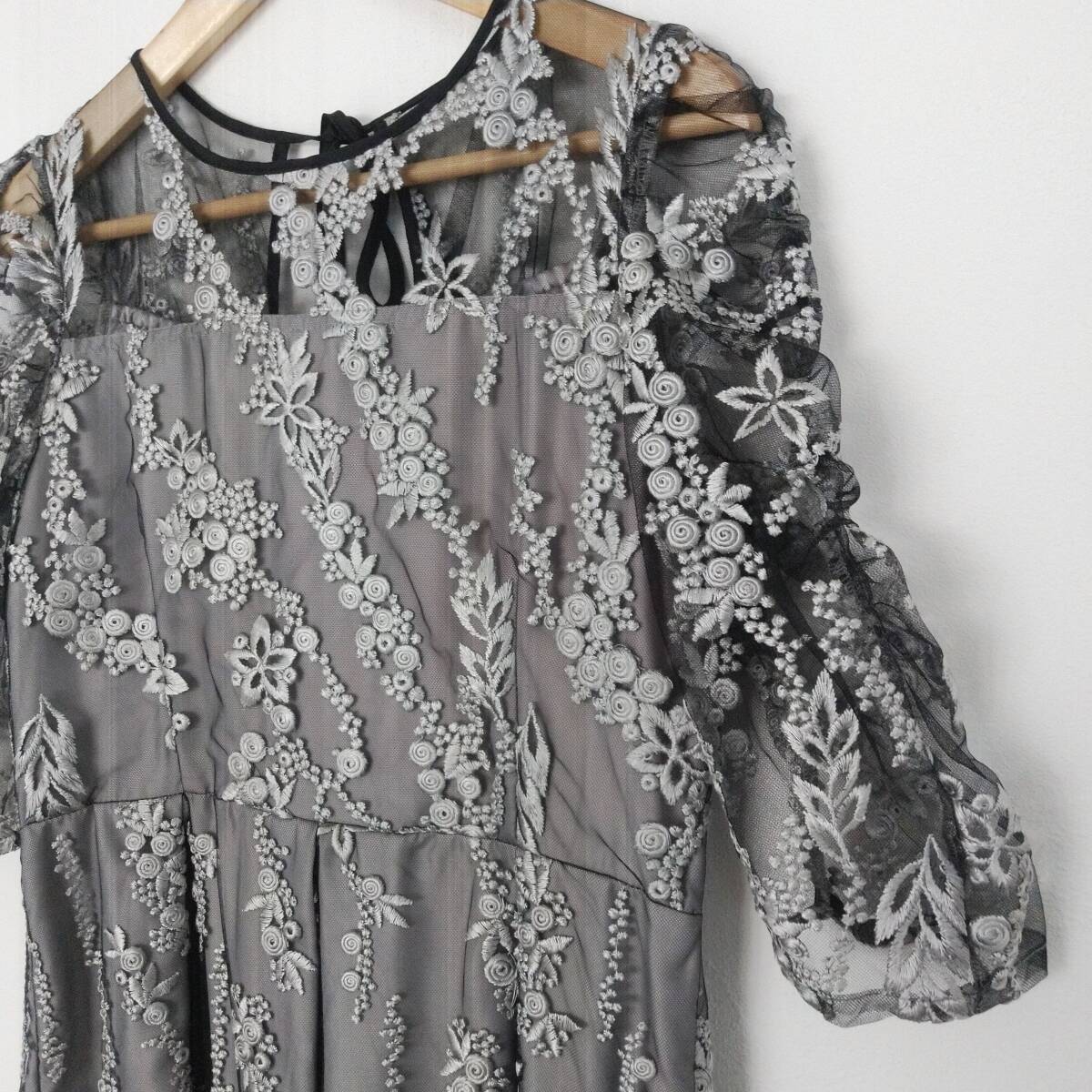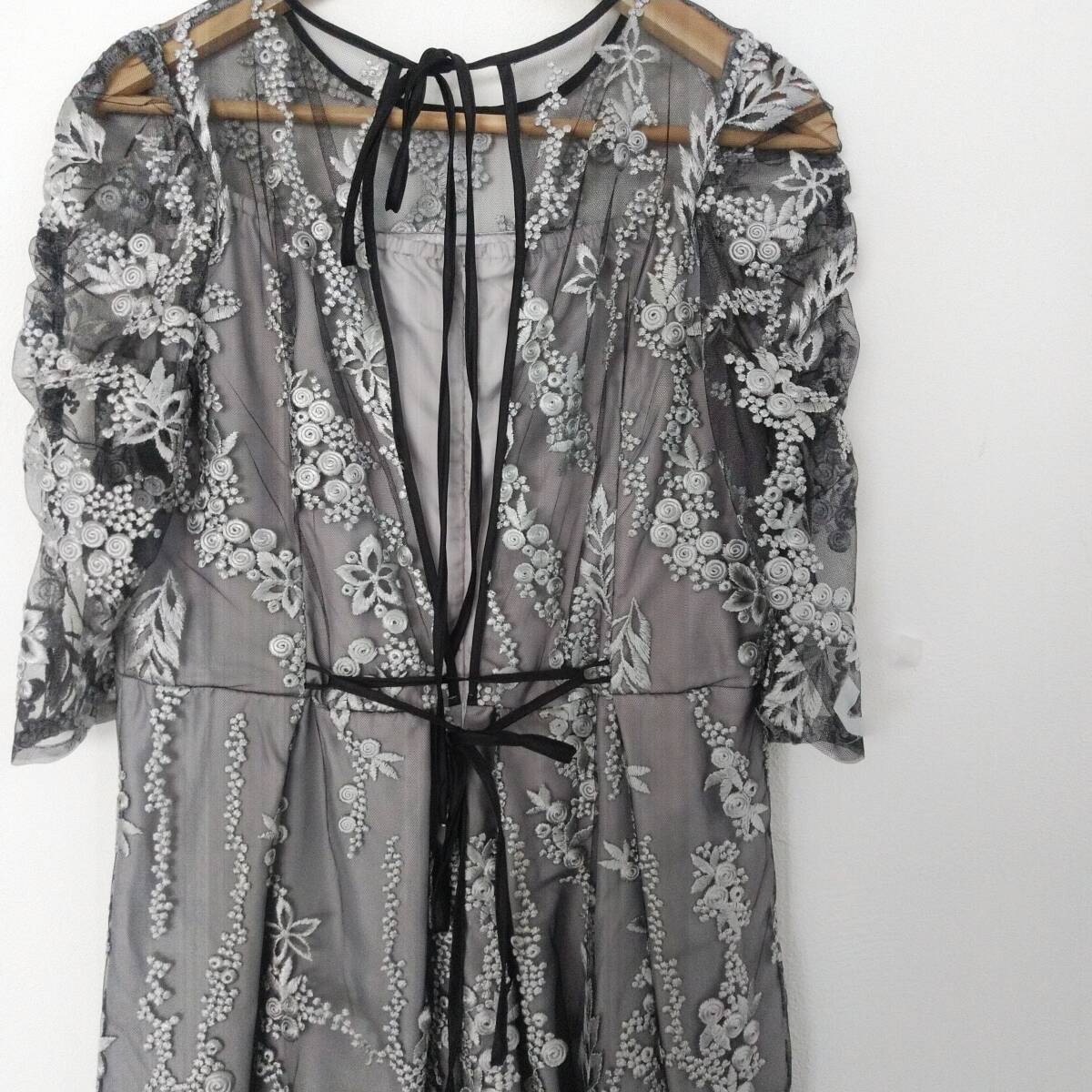 ▲【美品/試着のみ】niana ニアナ 刺繍レース×バックリボン パーティードレス M ブラック系