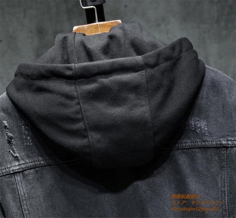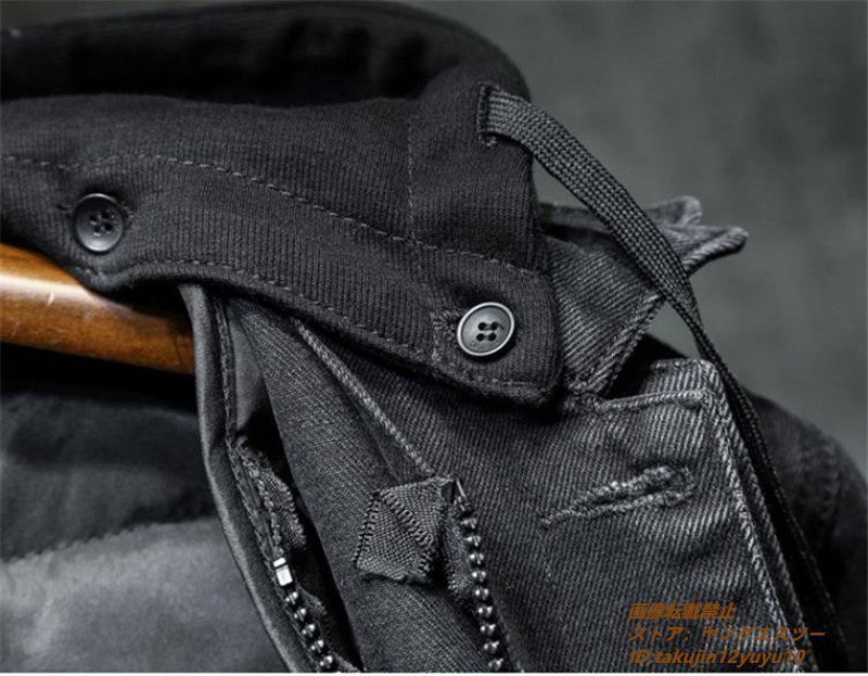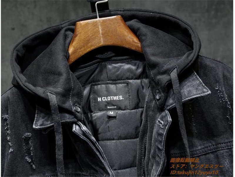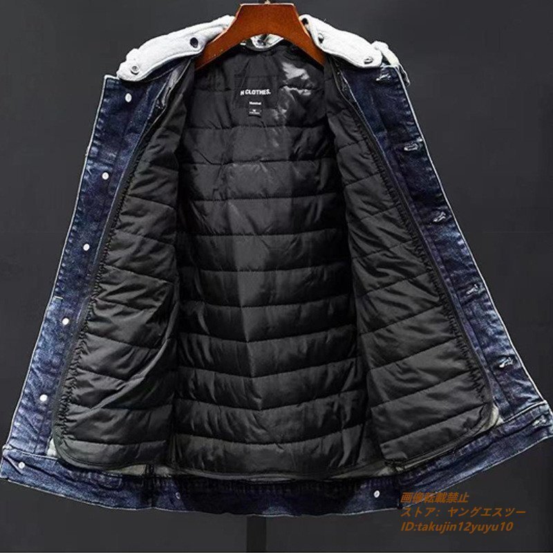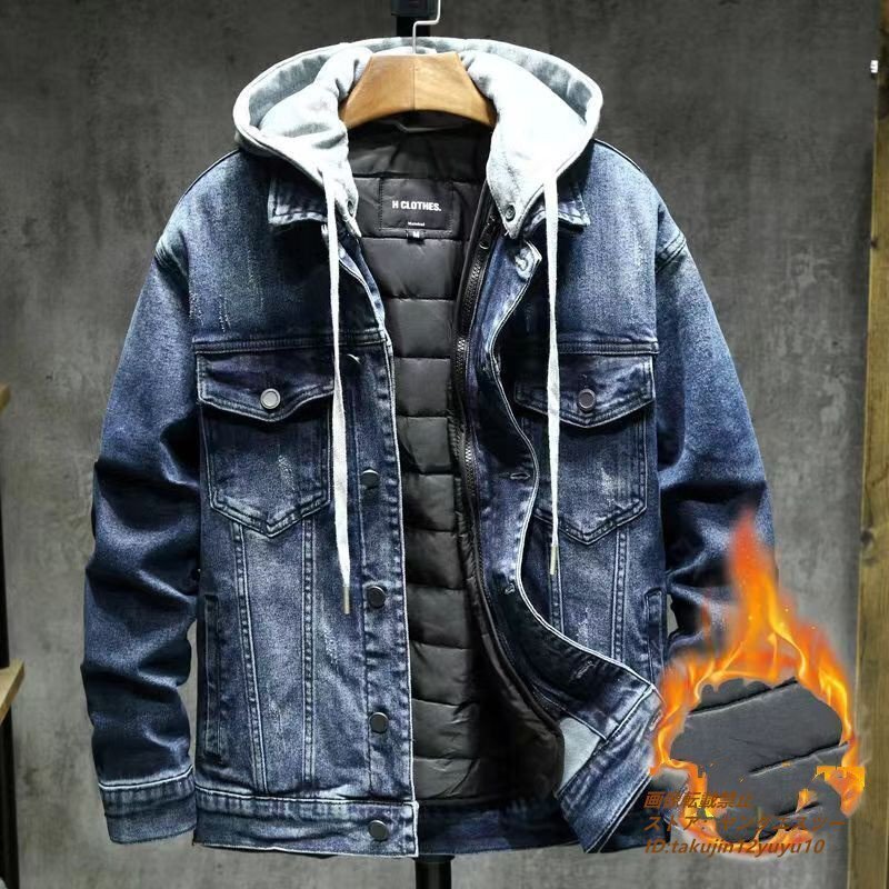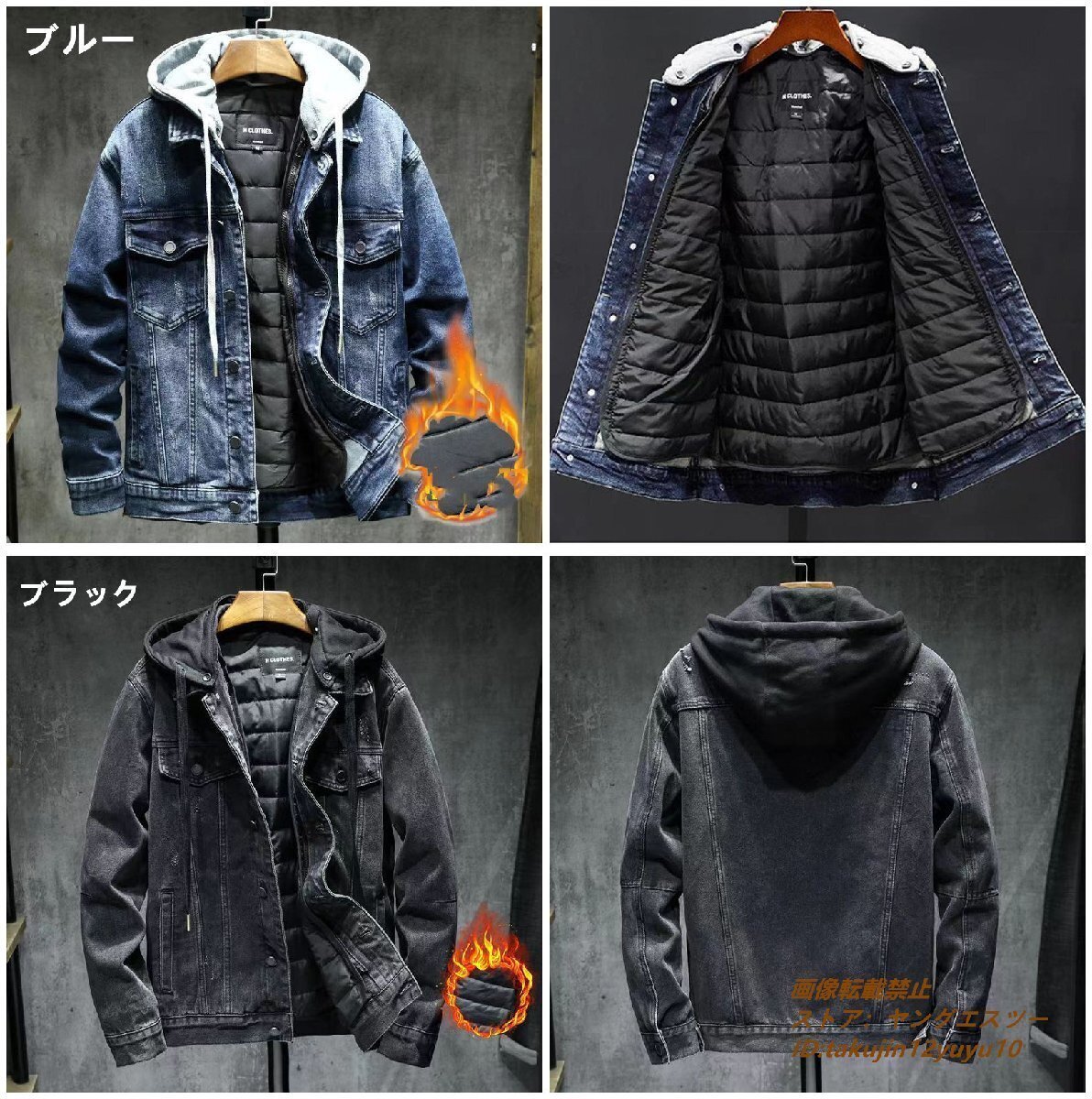 冬新品 デニムジャケット 厚手 ジージャン フード 取り外し可 アウター 中綿 ジャンパー ブルゾン ショートコート Gジャン ブルー L