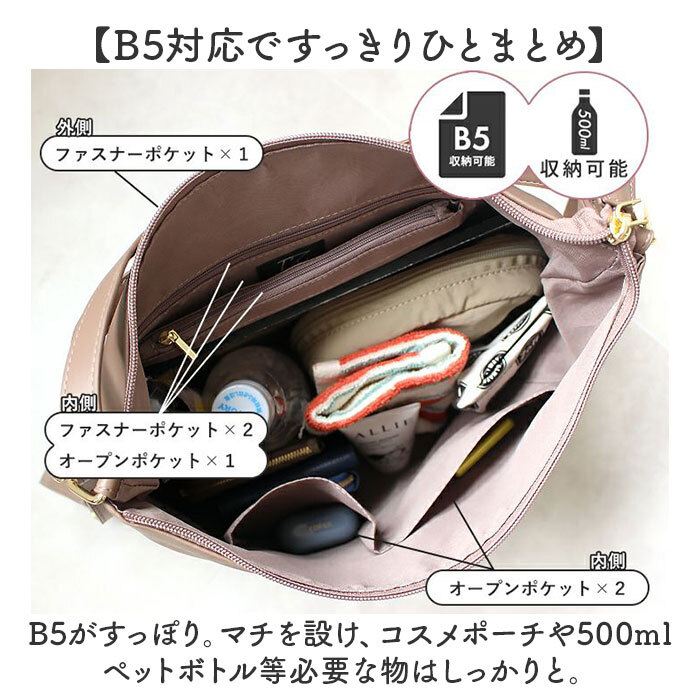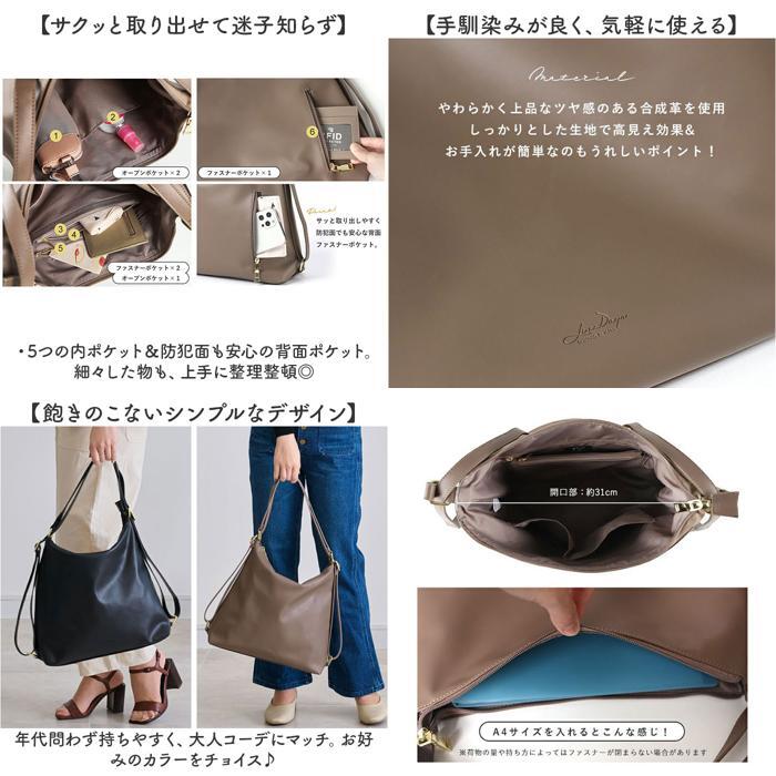 商品説明 | ・・【オン・オフ問わず活躍する相棒】 ・・2つのスタイルを楽しめる♪「LIZDAYS 2way トートandリュックサック」。 ・【お好みに合わせてスタイルチェンジ】 ・肩掛けのトートバッグとして。両サイドのショルダーを引っ張って、リュックにもなる2way☆ ・【開閉スムーズ、安心の天ファスナー】 ・ガバっと開いて取り出しやすく、ファスナーを閉じれば中身の飛び出しをガード。 ・【B5対応ですっきりひとまとめ】 ・B5がすっぽり。マチを設け、コスメポーチや500mlペットボトル等必要な物はしっかりと。 ・【サクッと取り出せて迷子知らず】 ・・5つの内ポケット&防犯面も安心の背面ポケット。細々した物も、上手に整理整頓◎ ・【手馴染みが良く、気軽に使える】 ・柔らかく上品なツヤ感のあるフェイクレザー。洗練された仕上がりながら、お手入れは簡単。 ・【飽きのこないシンプルなデザイン】 ・年代問わず持ちやすく、大人コーデにマッチ。お好みのカラーをチョイス♪ ・【ポケット仕様】 ・内側:ファスナーポケット×2、オープンポケット×3 ・背面:縦ファスナーポケット×1 |