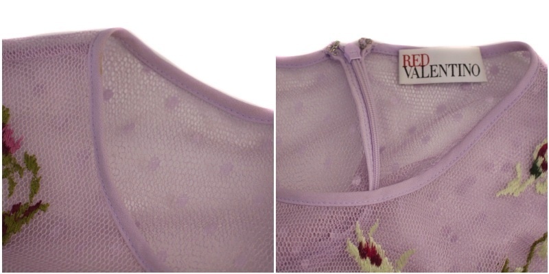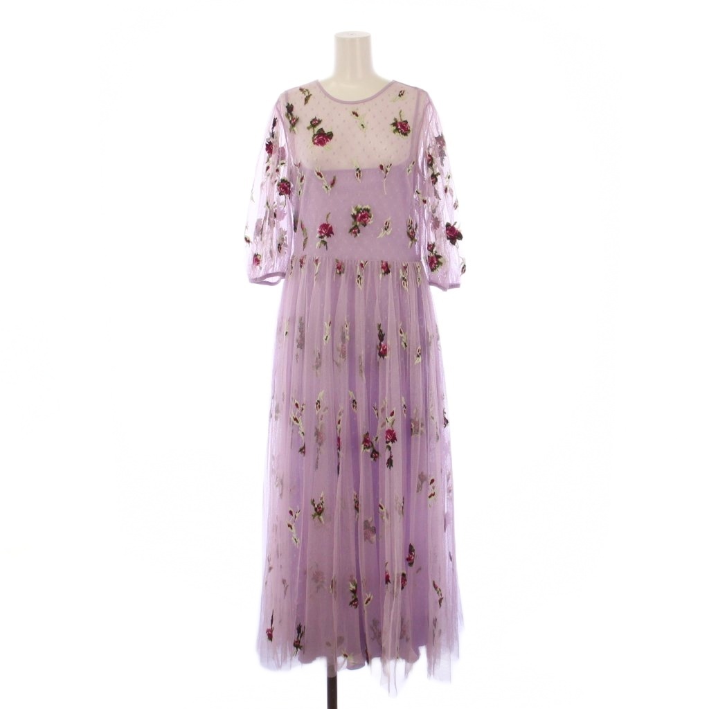 レッド ヴァレンティノ RED VALENTINO ワンピース ロング 五分袖 シアー シースルー 刺繍 チュール 花柄 42 紫 レディース