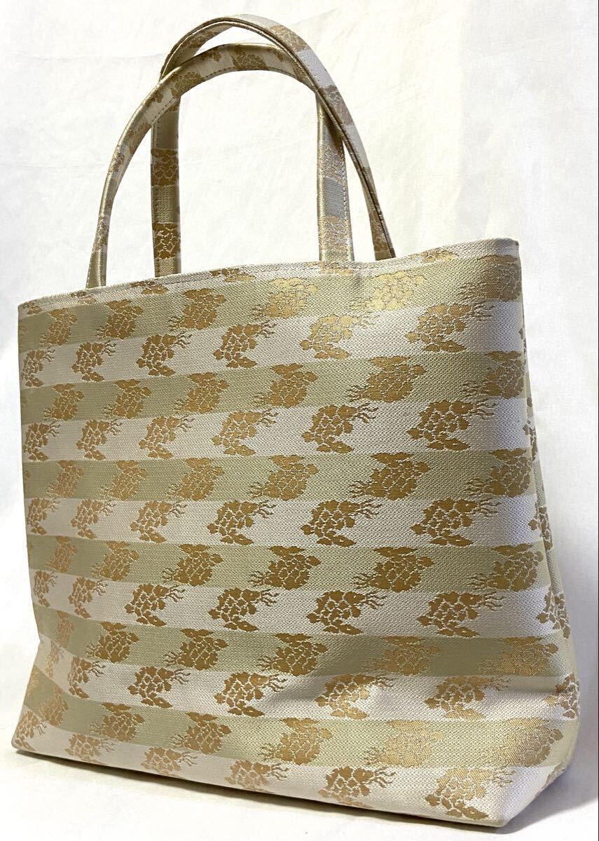 | ☆★☆必ず自己紹介も含め全てお読み下さい。お読み頂いていないせいでの落札後のクレームは、落札者都合でキャンセルさせて頂きます☆★☆ 荒磯文様の着物用高級手提げバッグです。新品未使用です。 和服・和雑貨屋さんの在庫品で、お手に取っていただけばお分かりいただける、非常に良いお品です。お色柄とも非常に上品で、さりげない高級感が漂います。 この価格は超破格ですので早い者勝ちです。 【実寸サイズ】 幅約26cm×高さ約23cm×マチ約9cm ※素人採寸のため誤差ご了承下さい。 新品ですが在庫品です。内側の底部に、よくよく見ないと分からない程度の点ジミがあります。(最後の画像に写しましたが小さ過ぎて分かりにくい程度です。) 細かいことを気にされる方はご遠慮下さい。 他にも和装関連のお品いろいろ出品しております。 同梱承りますので、是非ご覧下さいませ♪ | ||