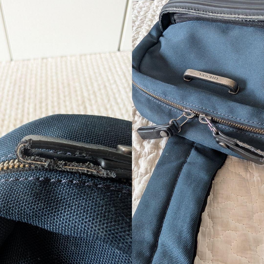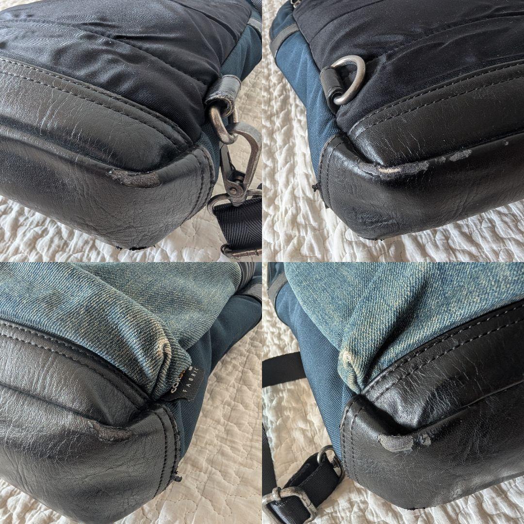 外面 :フェイクレザー、デニムなどダメージ箇所あり