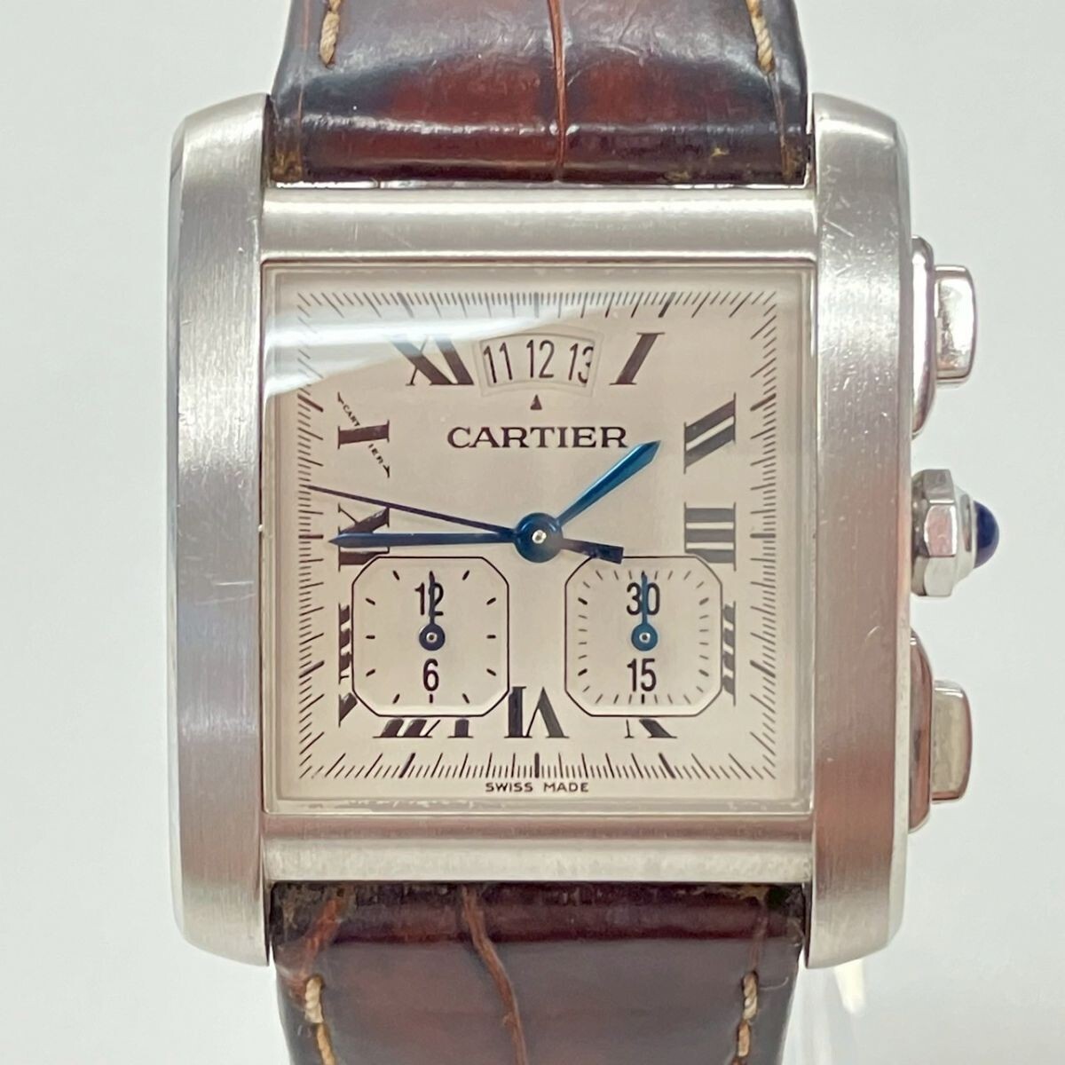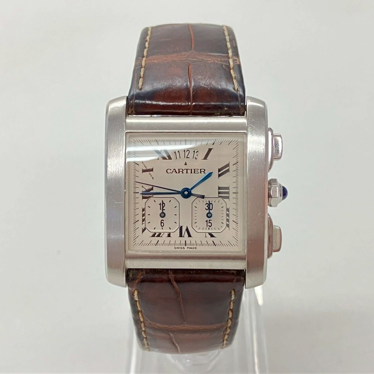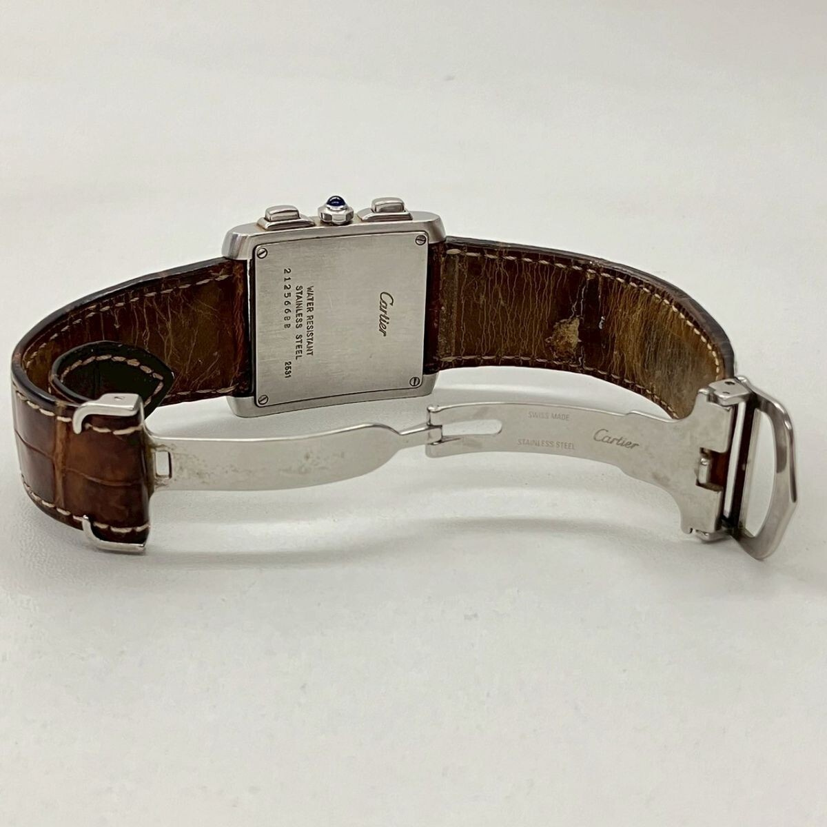 取り扱っている商品は未使用・未開封も含め、全て一度は人の手に渡った一点ものの中古・ジャンク扱いでの商品です。 当方素人ですので肉眼で確認できる簡易的な検品、採寸、および簡易梱包となります。 ※稼働の記載につきましては秒針等の確認のみとなり、全体の動作を保証するものではございません。 また、出品時の中古品の動作状況となりますので、予めご了承の上でご入札ください。 不動の表記につきましてはクォーツ式のムーブメントの場合、動作未確認の状態となります。 電池交換後、不具合があった場合でも返金、返品の対象とはなりませんので、予めご了承くださいますようお願い致します。 細かな日差、オーバーホール状況、社外パーツの使用に関しては保証しかねますので、ご理解いただけた上でのご入札をお願い致します。 上記を踏まえた上で中古品、ジャンク商品として出品させていただいておりますので、全てご理解いただけた上でのご入札をお願いいたします ------------------------------------------------------------------------- 【メーカー】 Cartier 【モデル名】 Tank Franaise 【型番】 2531 【シリアル】 212566BB 【サイズ】 直径約3cm 腕回り約15.5cm 【付属品】 画像参照 【稼働状態】 不動 【その他状態】 リューズ動作 時間:- 日付:- 曜日:- リューズ不具合あり・針不動 ------------------------------------------------------------------------- 画像にあるものが全てです。 他詳細は画像にてご判断ください。 ※目立つ傷や汚れを中心に写真を撮っておりますが、画像に写りきっていない傷等がある場合もございます。予めご了承ください。 ※商品を多数出品している関係で、稀に商品説明や画像に誤りがある場合がございます。予めご了承ください。 こちらのページをご覧いただく際は、商品説明文と掲載している画像の全てを確認いただいた上でご入札ください。 | |||||||