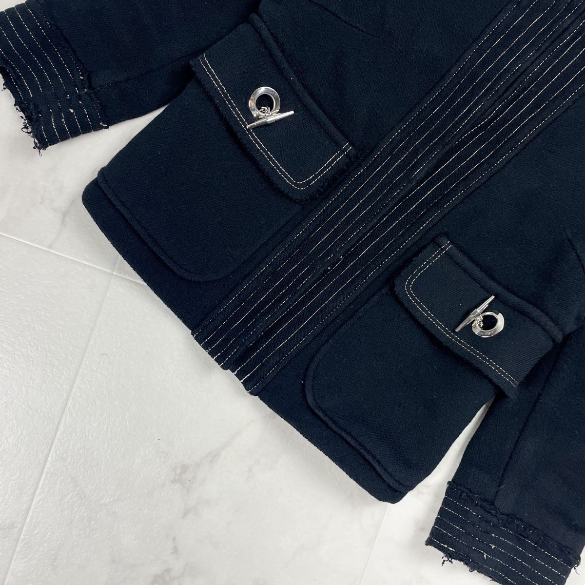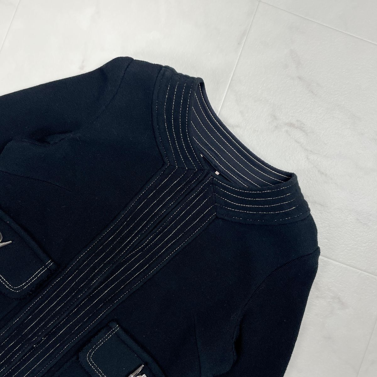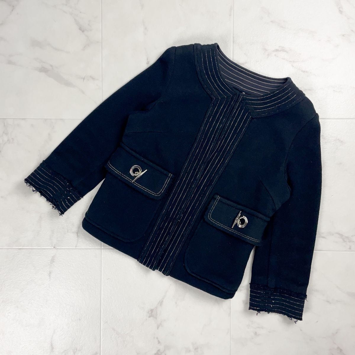 DOUBLE STANDARD CLOTHING ダブルスタンダードクロージング ノーカラージャケット 長袖 ステッチ レディース 黒 ブラック サイズS*FD388