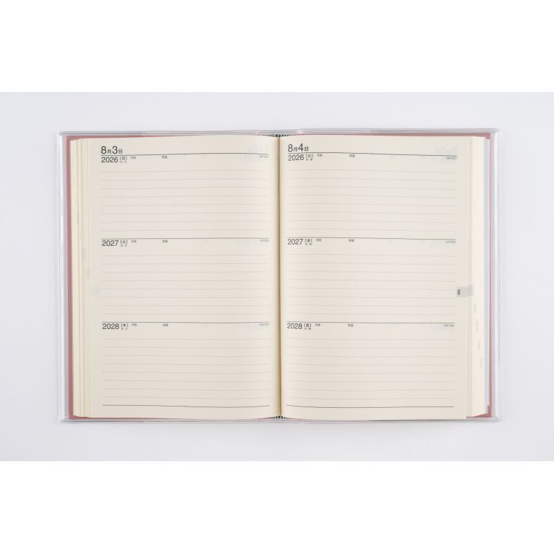共に年月を歩むのにふさわしい上質さ。3年間、生活に寄り添うパートナーになる一冊です。長年使い続けられるよう、耐久性にも優れた商品です。巻末には横ケイメモページと、カラーの世界・日本地図、歴史年表付き。