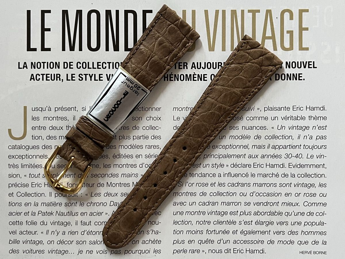 ◆デッドストック品 ヴィンテージ ベージュ 20mm リアルクロコ マットクロコ